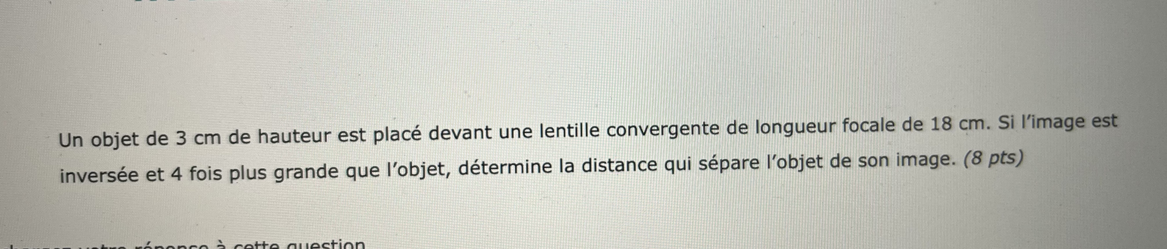 Secondaire 5 • 2aBonjour, je ne comprend qu’est-ce que c’est la distance qui sépare l’objet de son image et comment résoudre ce problème! Pouvez-vous m’aider? j’ai regardé toutes vos fiches sur l’optique et je ne comprends quand même pas! Merci