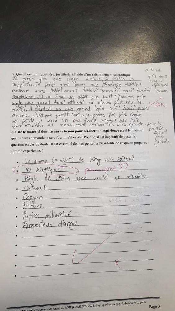 Secondaire 5 • 2aBonjour, je suis entrain de travailler un laboratoire sur la portée d'une projectile. Il nous demande quelle facteur influence la portée d'une balle lancé vers l'avant. J'ai pris le θ comme variable indépendant mais vous pouviez me dire si la justification est correcte?