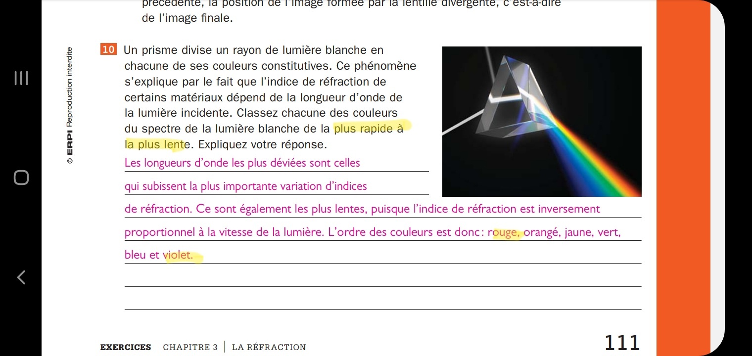 Secondaire 5 • 2ac'est quoi le lien entre la déviation du rayon réfracté et l'indice de réfraction.