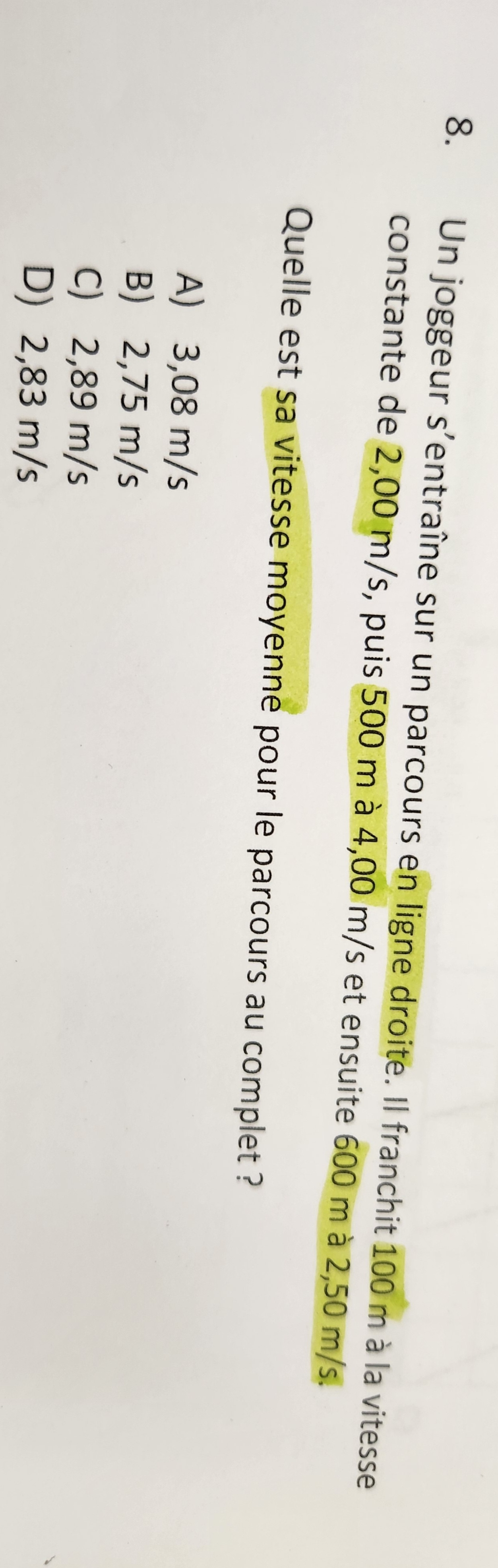 Secondaire 5 • 3aJe voudrais savoir comment trouver la vitesse moyenne
