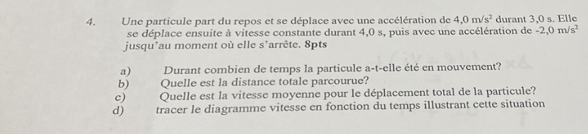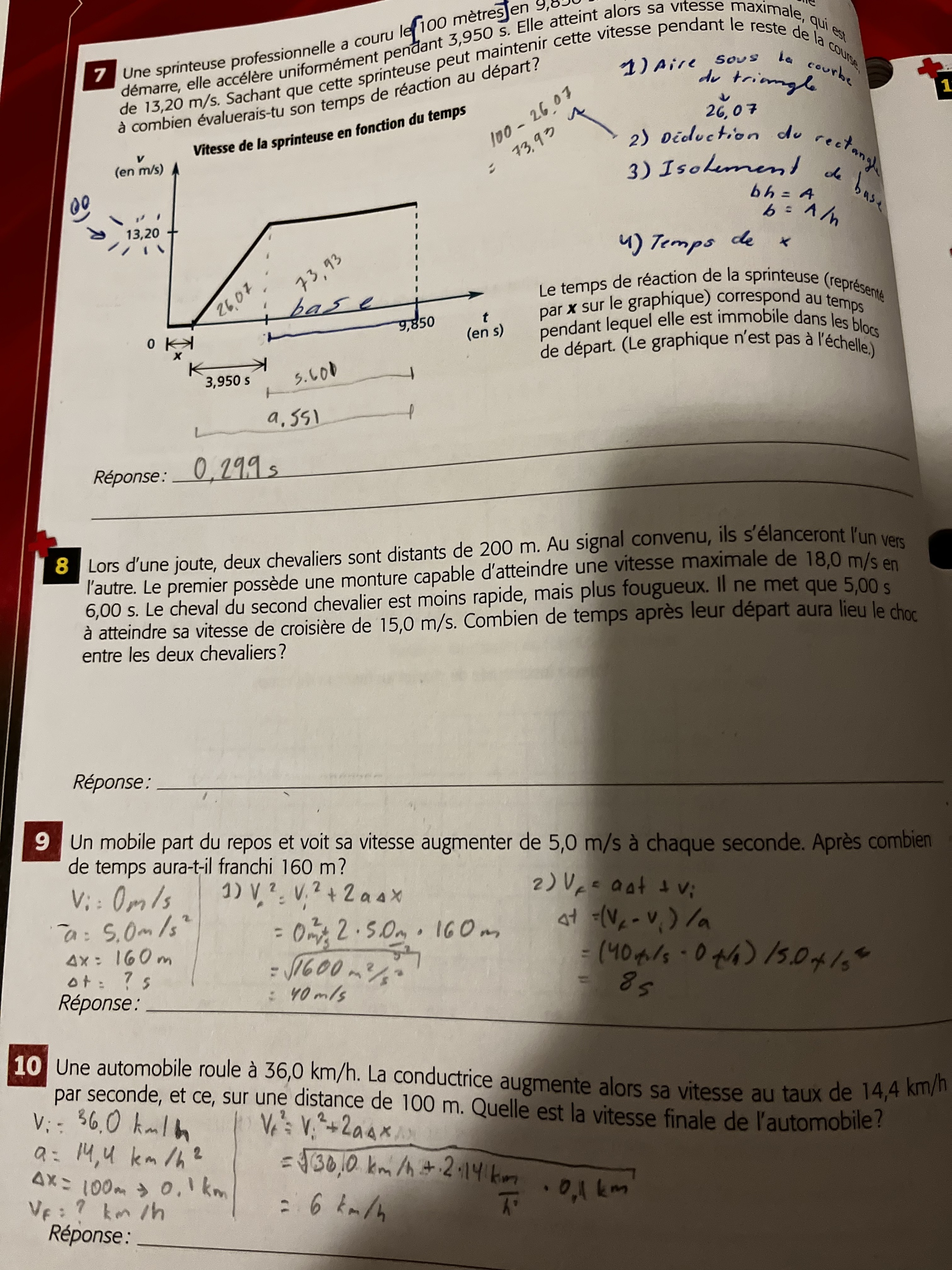 Secondaire 5 • 3aJ’ai commencé ce numéro à propos des équations du MRUA. Par contre, je ne sais pas quoi faire pour la suite… Pourriez-vous m’aider?