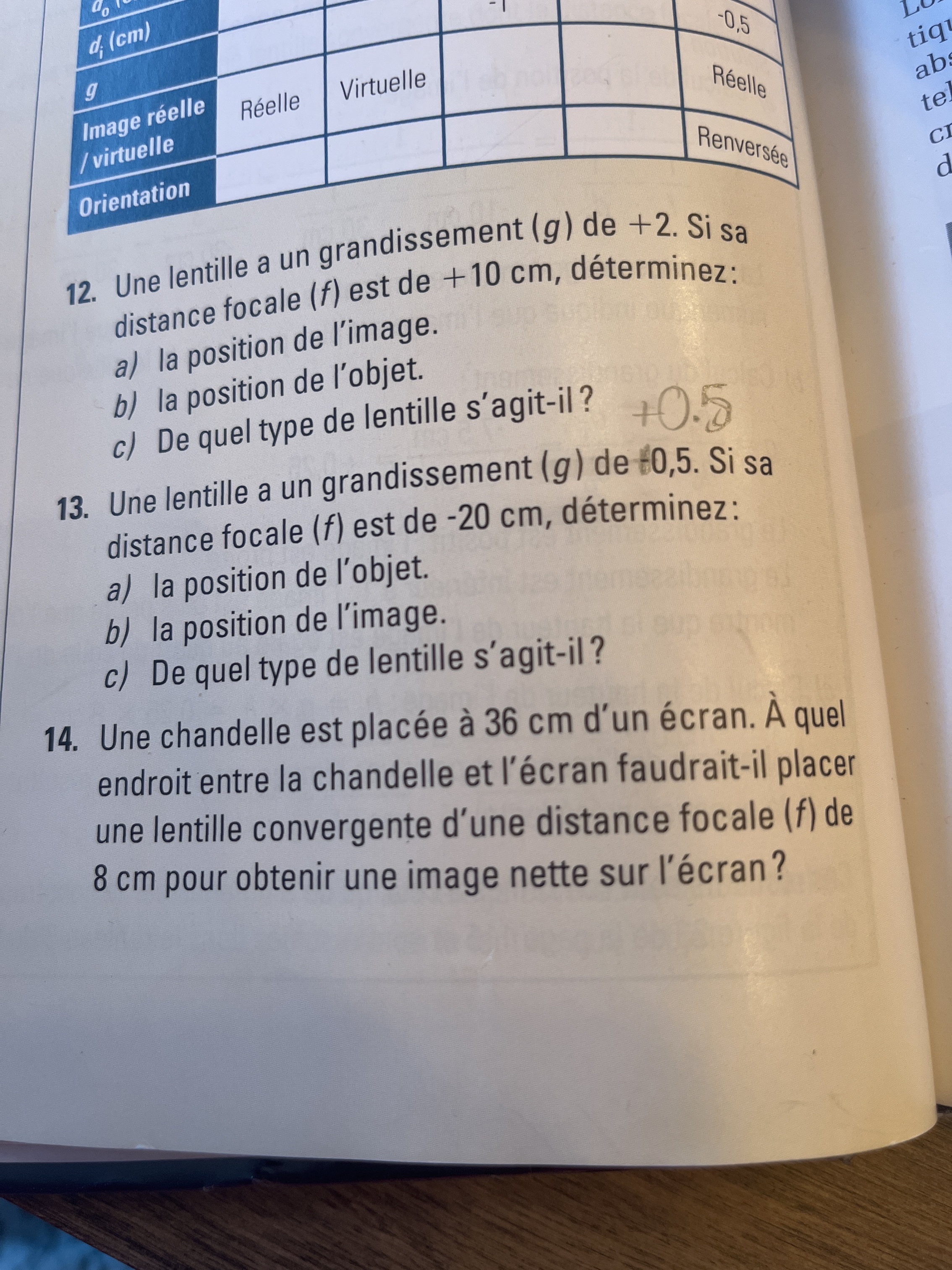 Secondaire 5 • 3aUne lentille convergente dont la longueur focale est de 15 cm produit une image réelle 3.0 fois plus grande que l'objet. Quelle est la distance entre cet objet et son image. J'ai tenté de faire mes calculs, mais il manque d'information.. pouvez-vous m'aider?