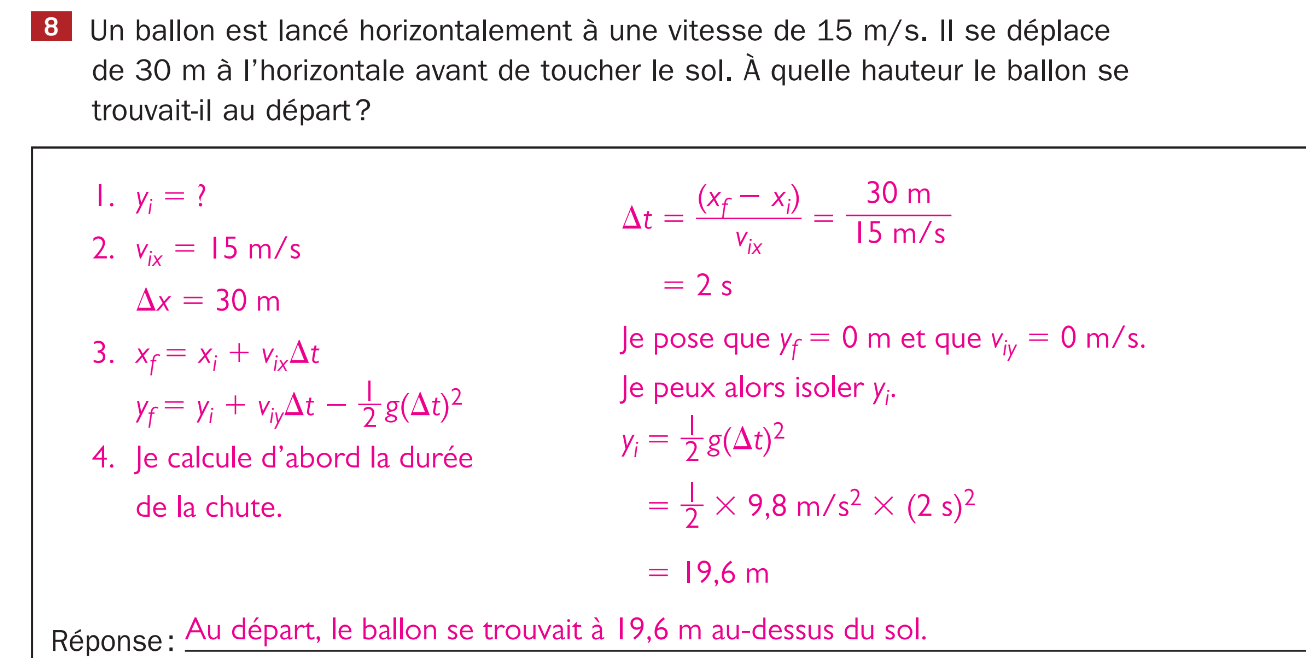 Secondaire 5 • 3aUn projectile est lancé depuis le sol atteint une hauteur maximale de 35,0 m et à une portée de 85,0 m. On me demande de déterminer la grandeur et l’orientation de sa vitesse de lancement. Comment faire ?