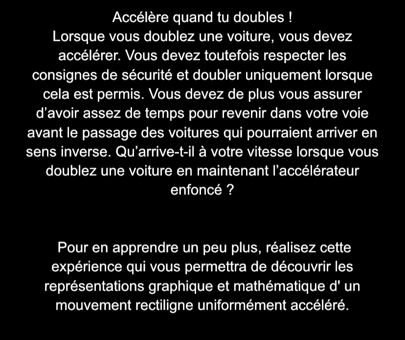Le but de ce laboratoire c'est de decouvrire les représentations graphique et mathématique d' un mouvement rectiligne uniformément accéléré.