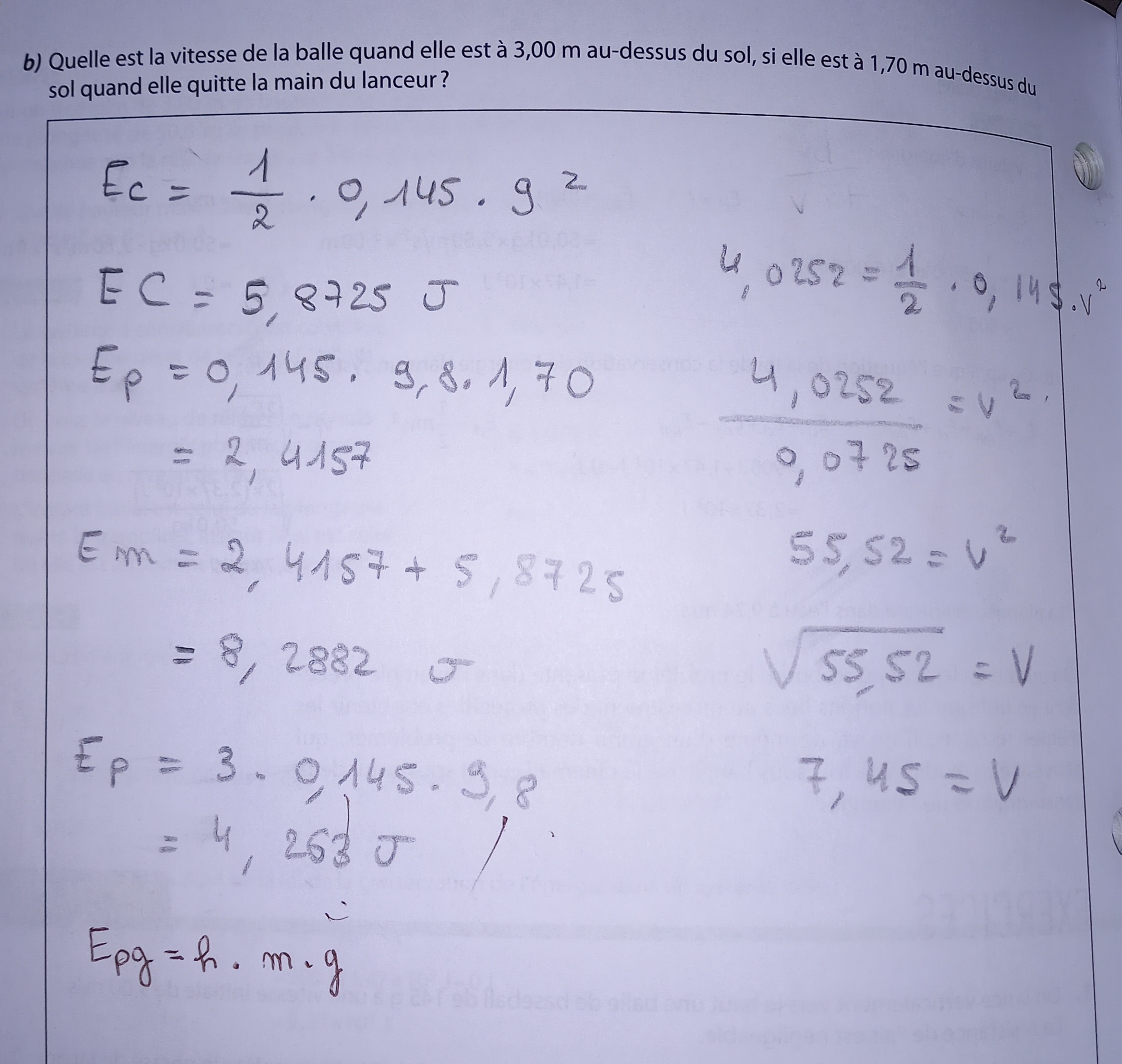 Il manque 1 partie de l'énoncé : On lance verticalement vers le haut une balle de base-ball de 145g à une vitesse initiale de 9,00 m/s.