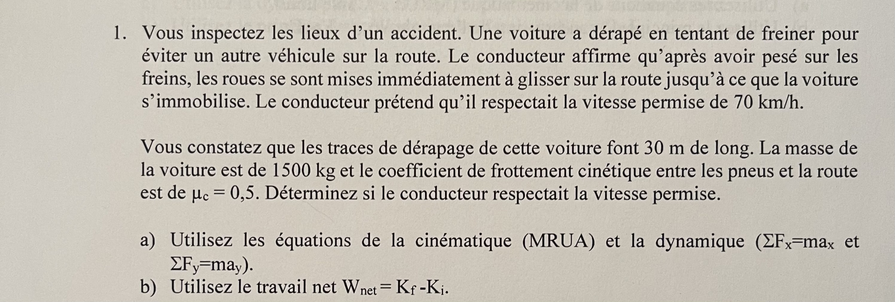 J'ai tout tenté avec les équations du MRUA mais je n'ai pas pu avoir la réponse , comment résoudre ce problème ?