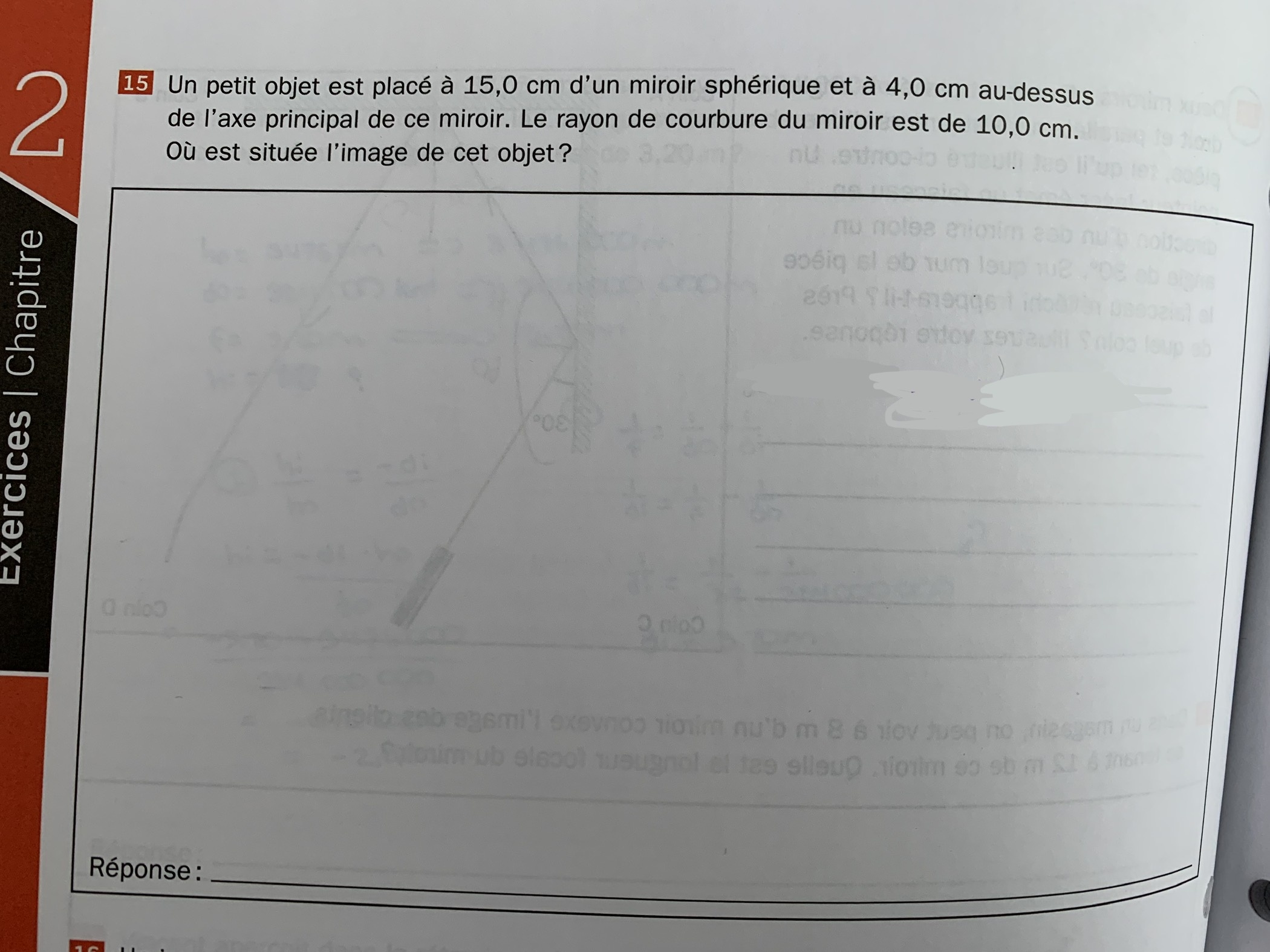 Elle vous demandera ainsi de relier par une relation mathématique la distance de l’objet au foyer et la distance de l’image au foyer à la longueur focale du miroir.