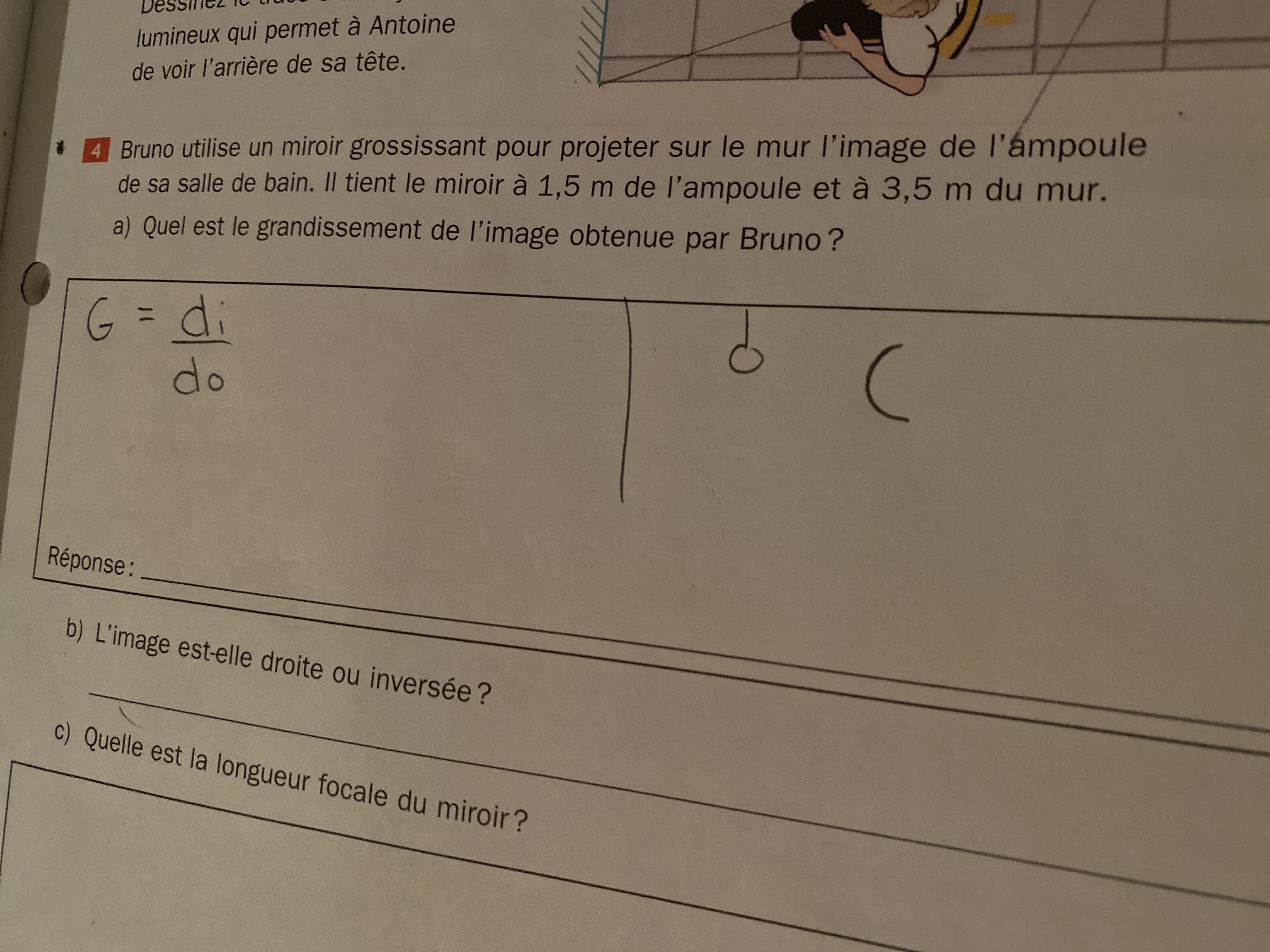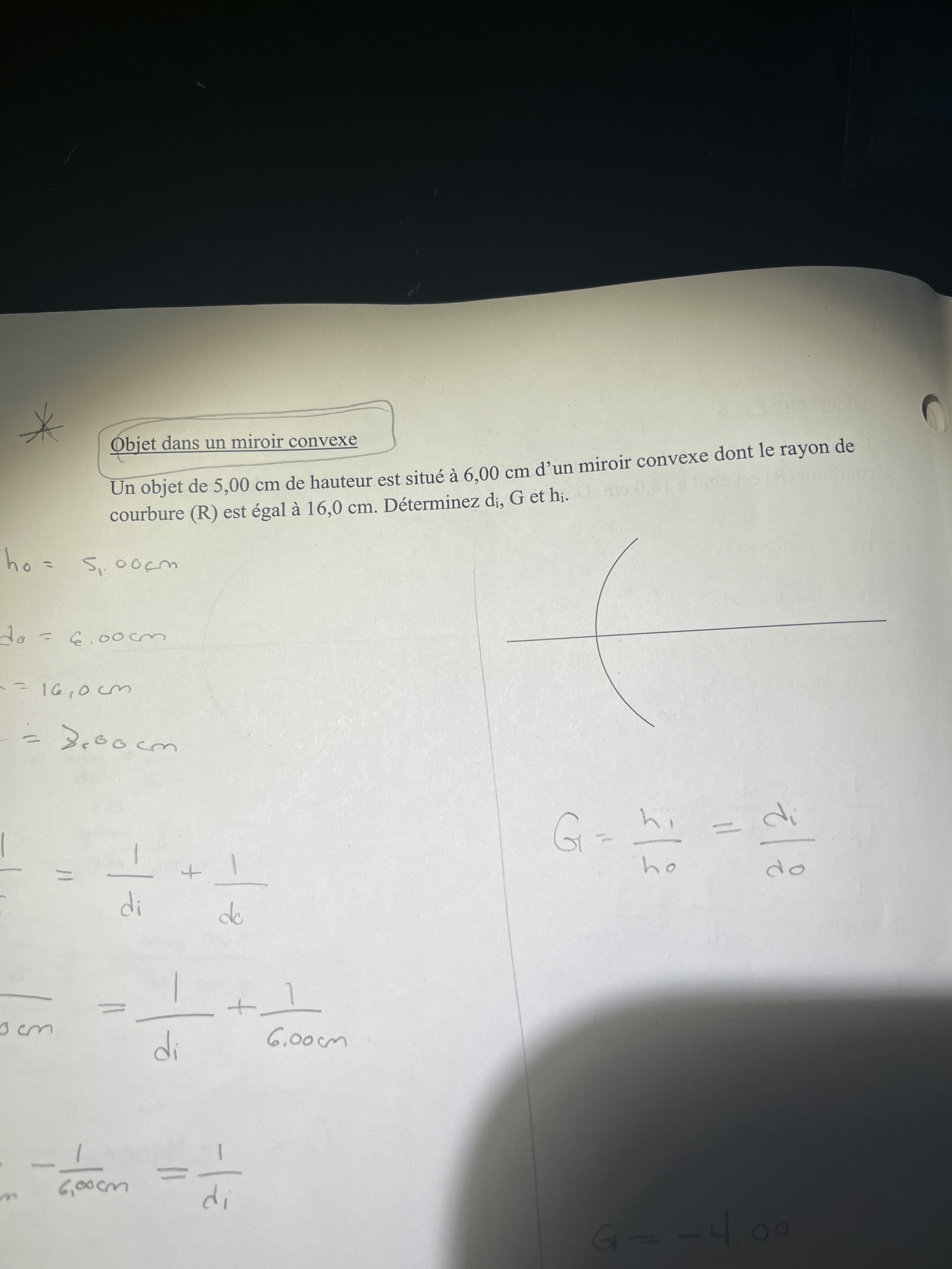 Secondaire 5 • 3aje ne sais pas comment dessiner le rayon lumineux qui passe directement le foyer et se réfléchie...ici...