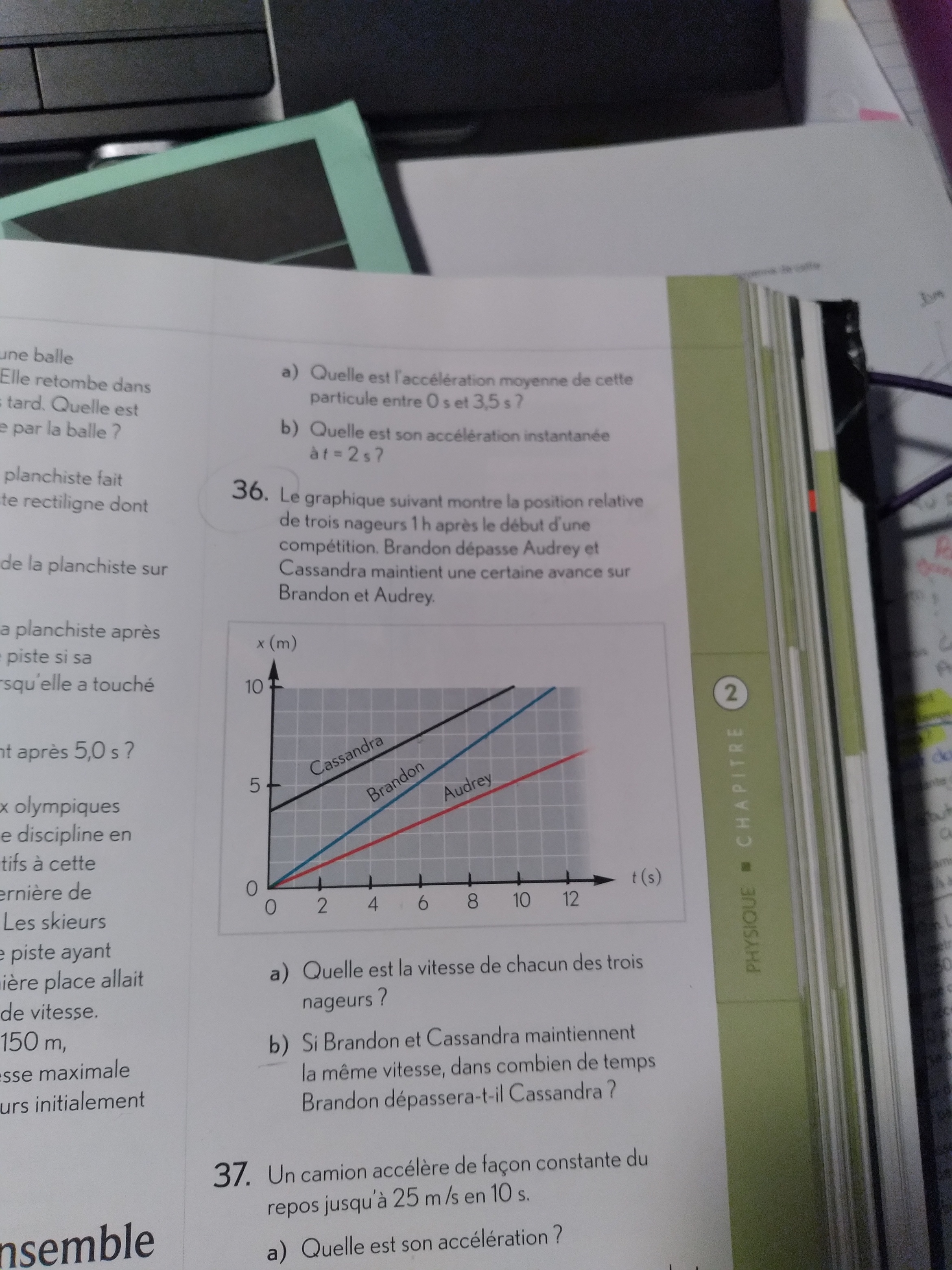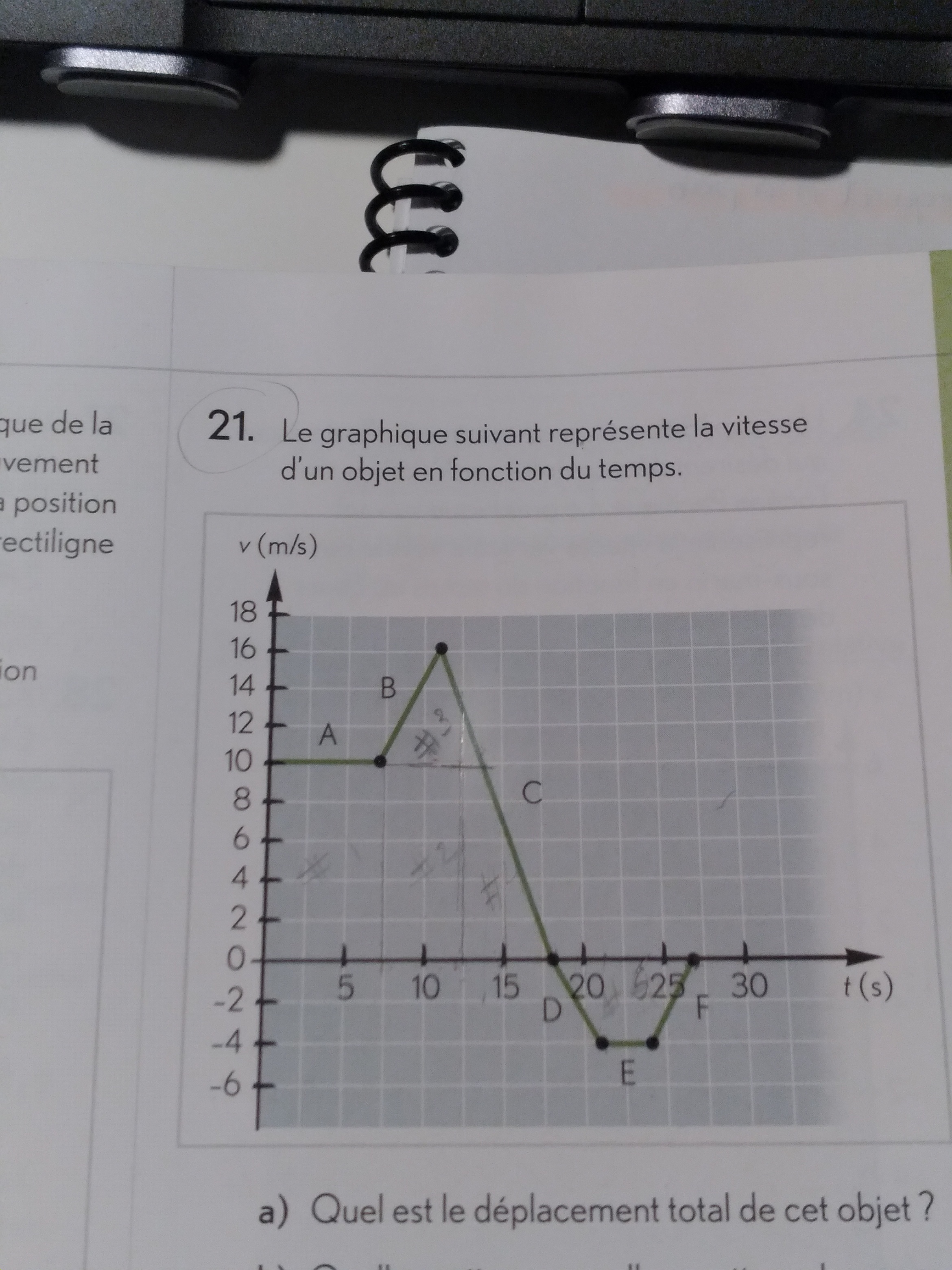 Secondaire 5 • 3aBonjour, j'aimerais savoir si les graduations pour le graphique de l'axe des X est belle est bien de 2,5 s , car dans le corrigé du manuel, on me donne 7s au lieu de 7,5 s.