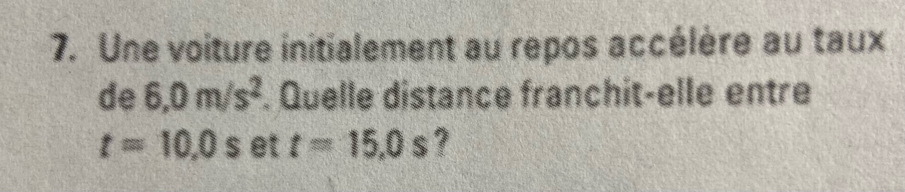 j’ai un numéro de physique que je ne comprend pas. La masse du skieur est de 82kg et on veut savoir quelle sera la force résultante pour que le skieur passe de l’immobilité à une vitesse de 15m/s sur une distance de 30m. De plus, on considère que l’accélération est constante.