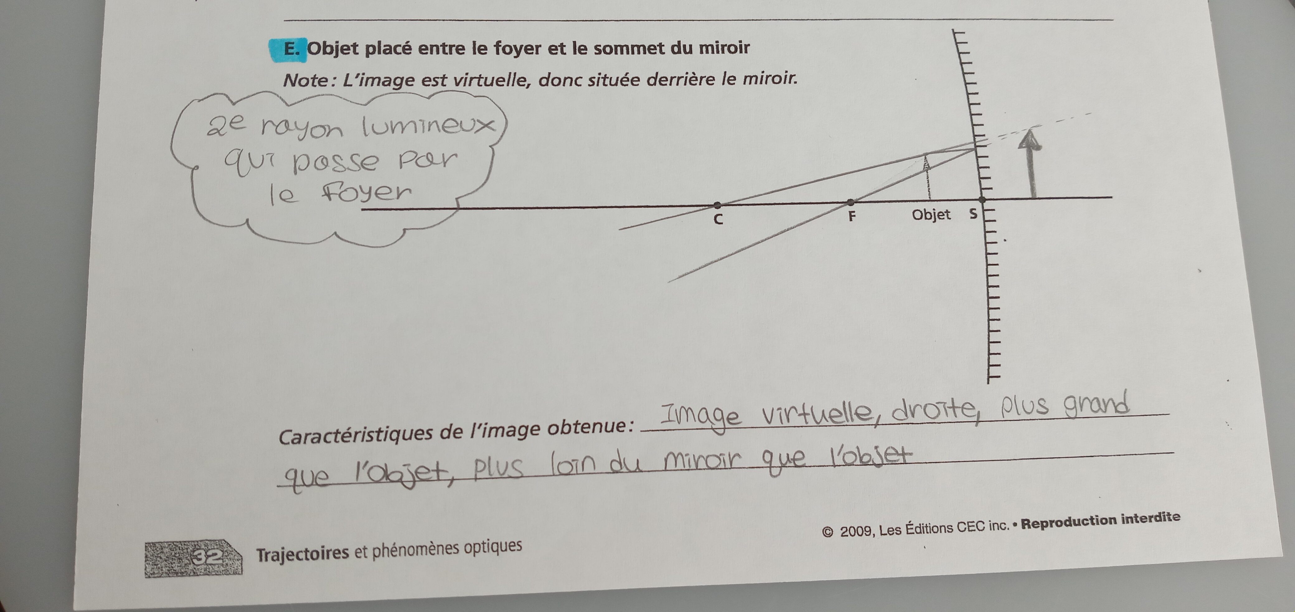 Secondaire 5 • 3aSi on place un objet entre le centre de courbure et le foyer d’un miroir concave , ou l’image se situera ?