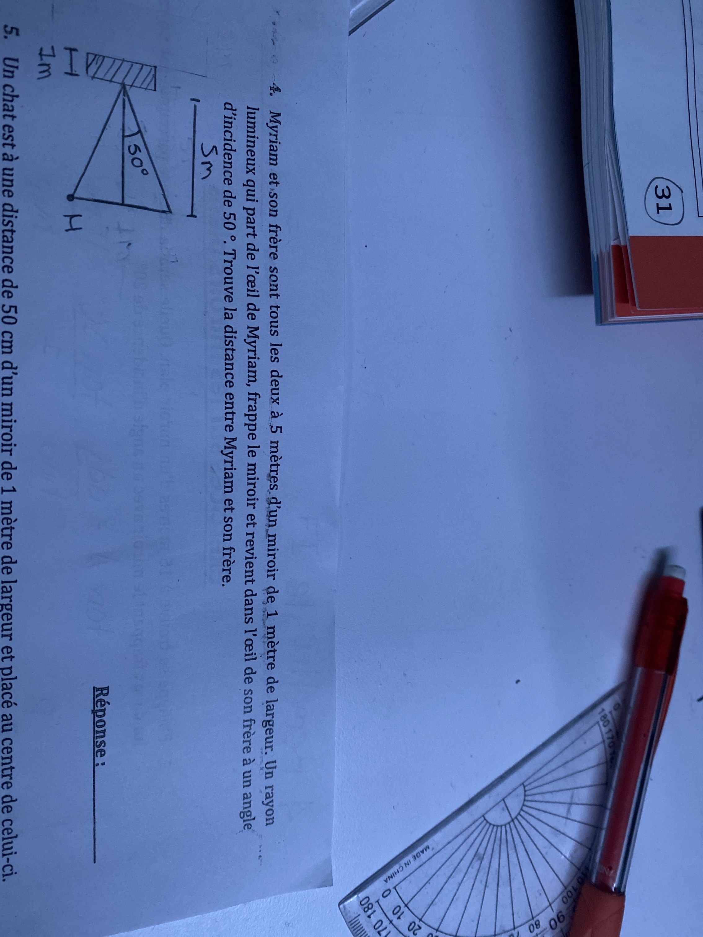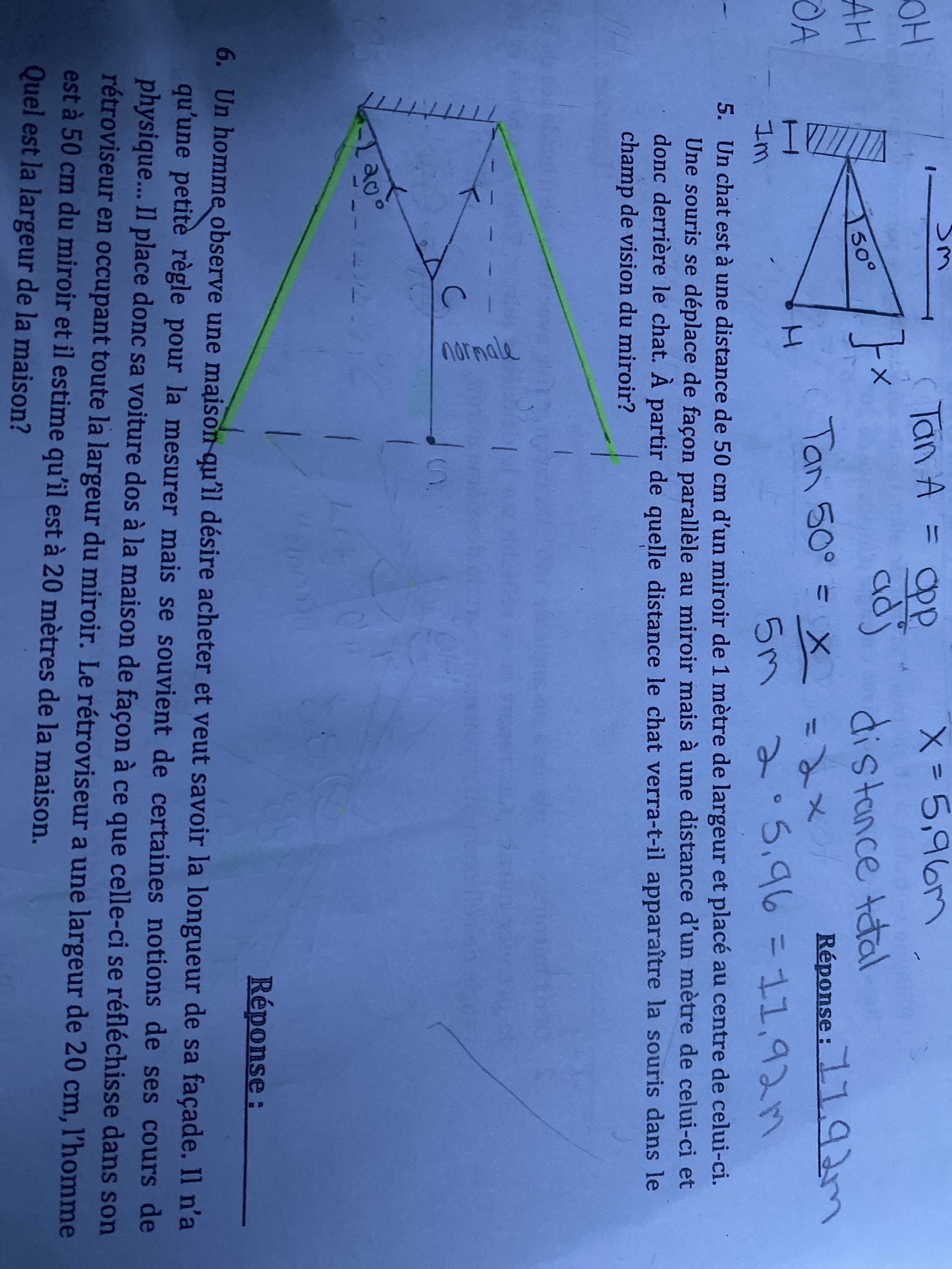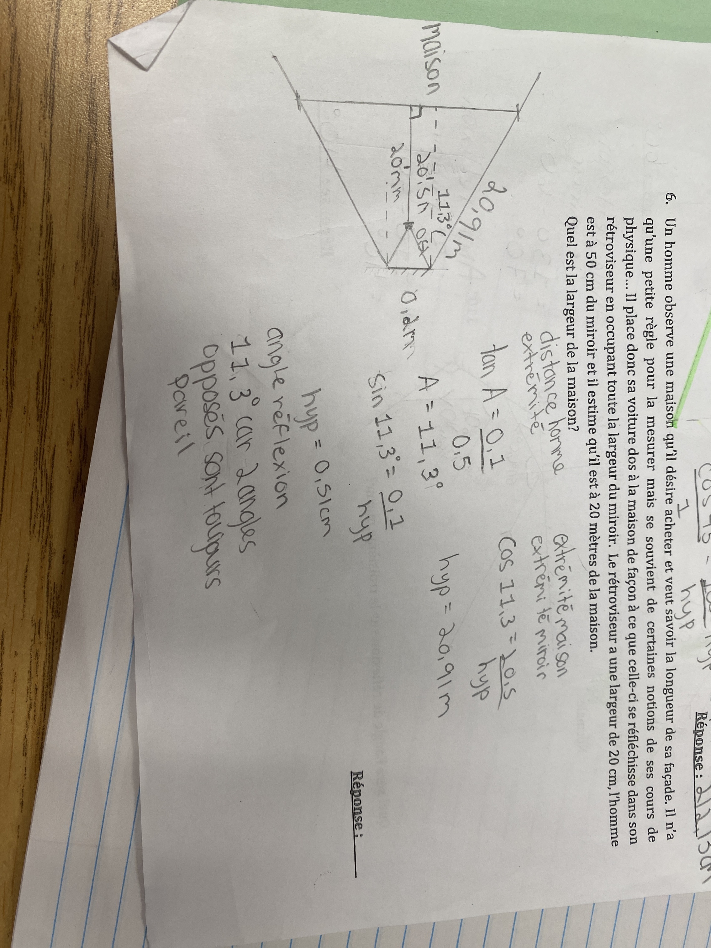 Secondaire 5 • 3aBonjour, comment procéder dans cette exemple, je suis incapable de faire un lien directe avec la largeur du miroir qui est la seule information donnée