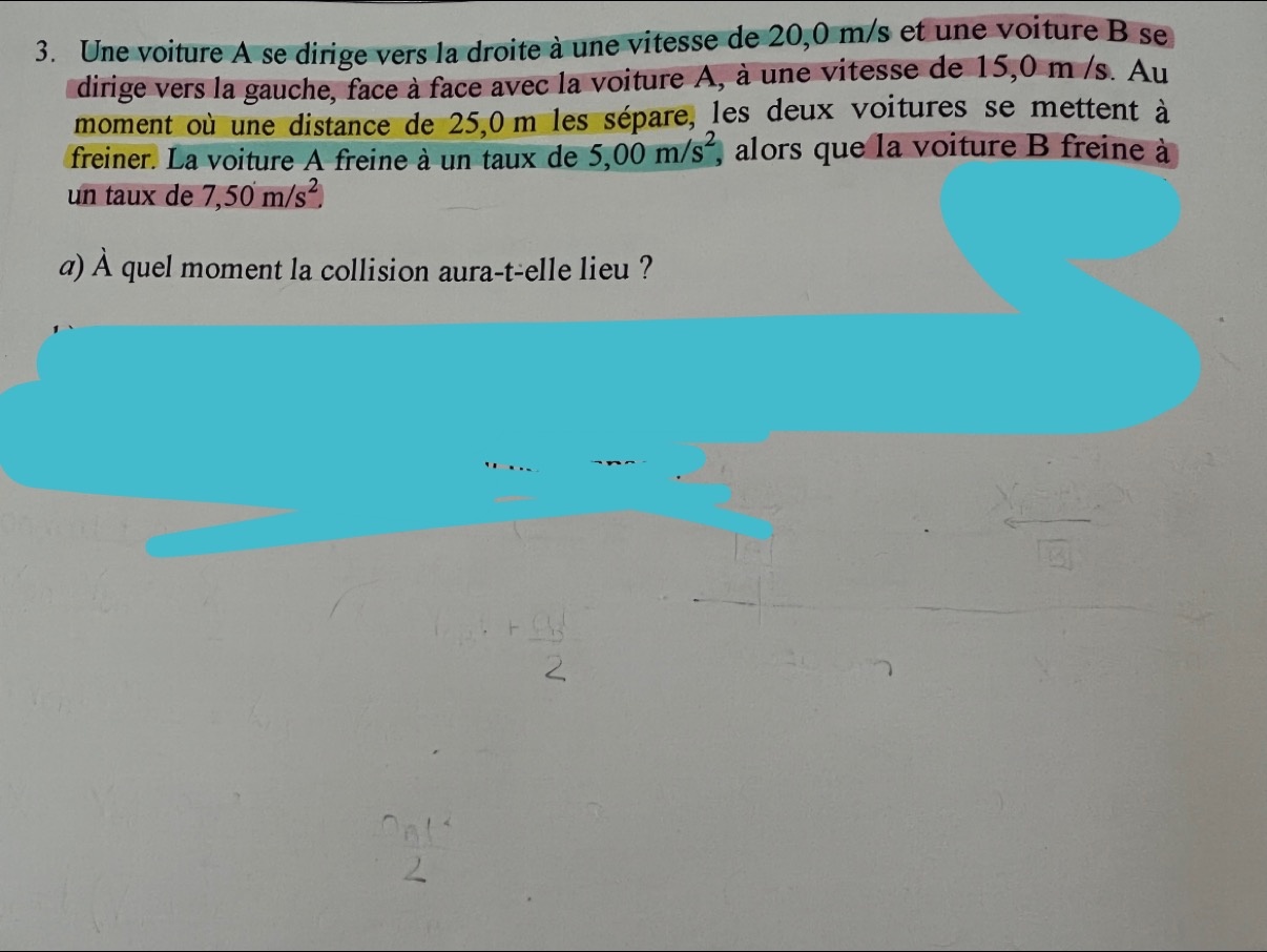 Secondaire 5 • 3aJai de la difficulté à comprendre comment faire le problème, car même avec les équations de la MRUA, cela ne fonctionne pas!
