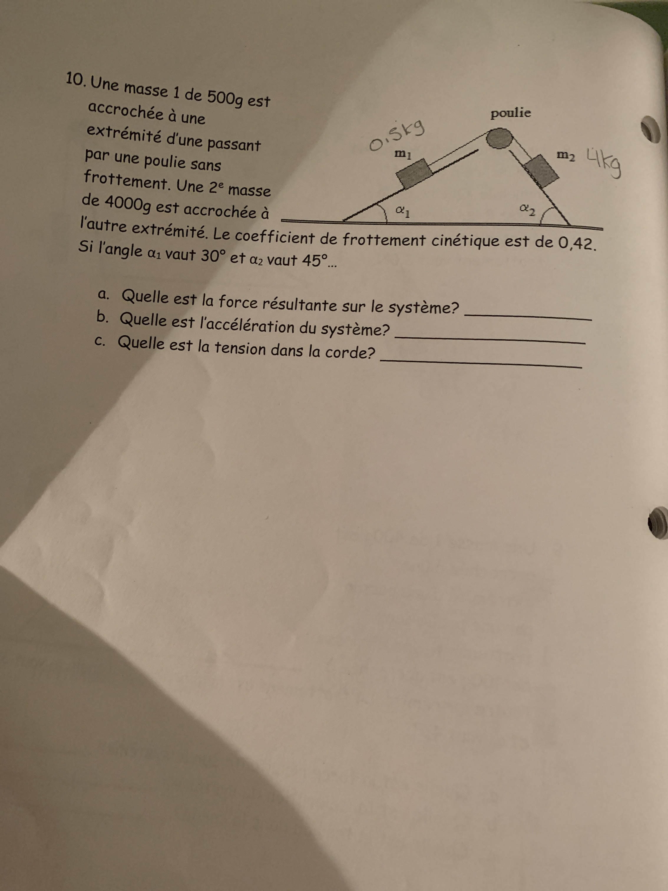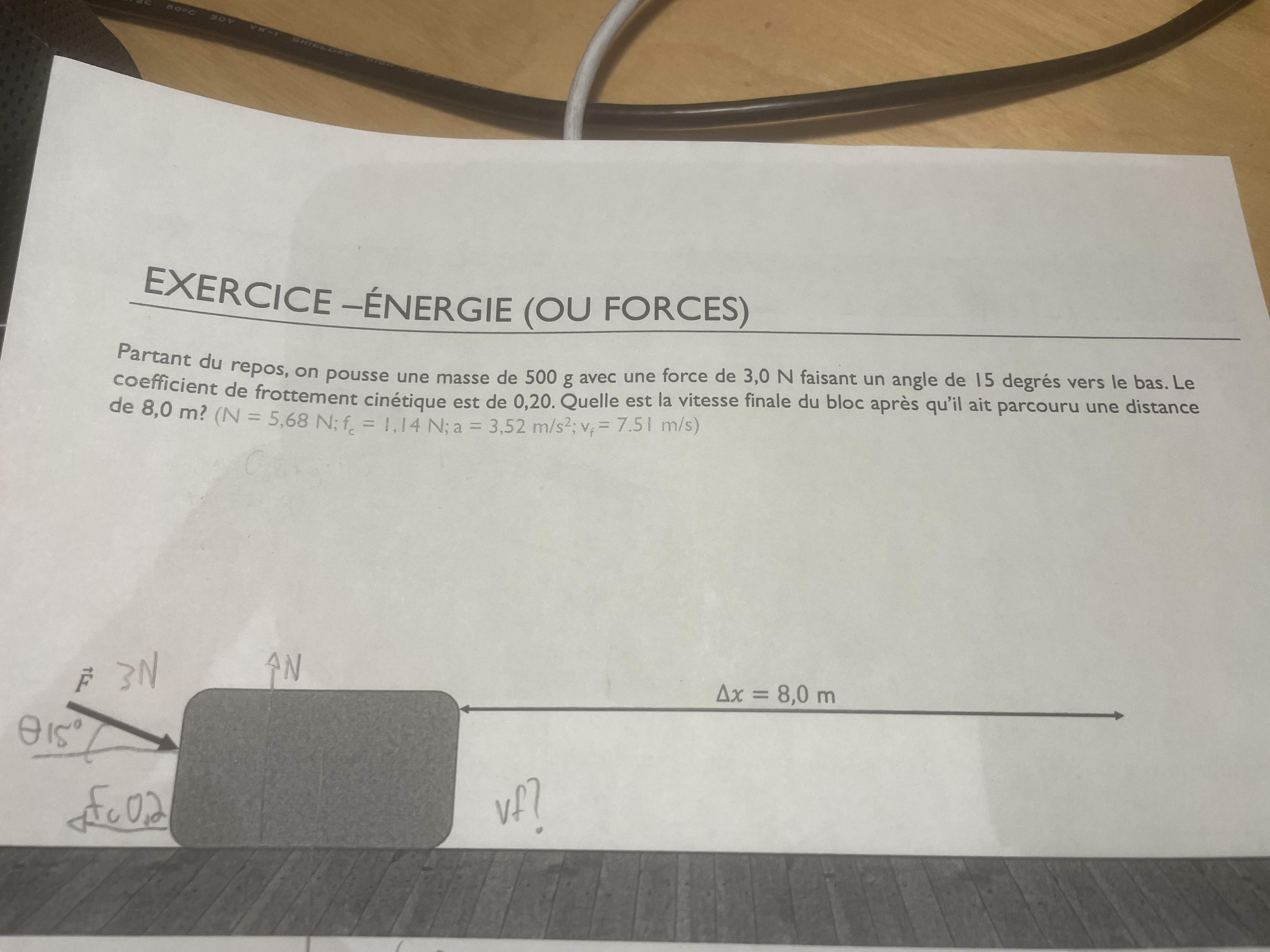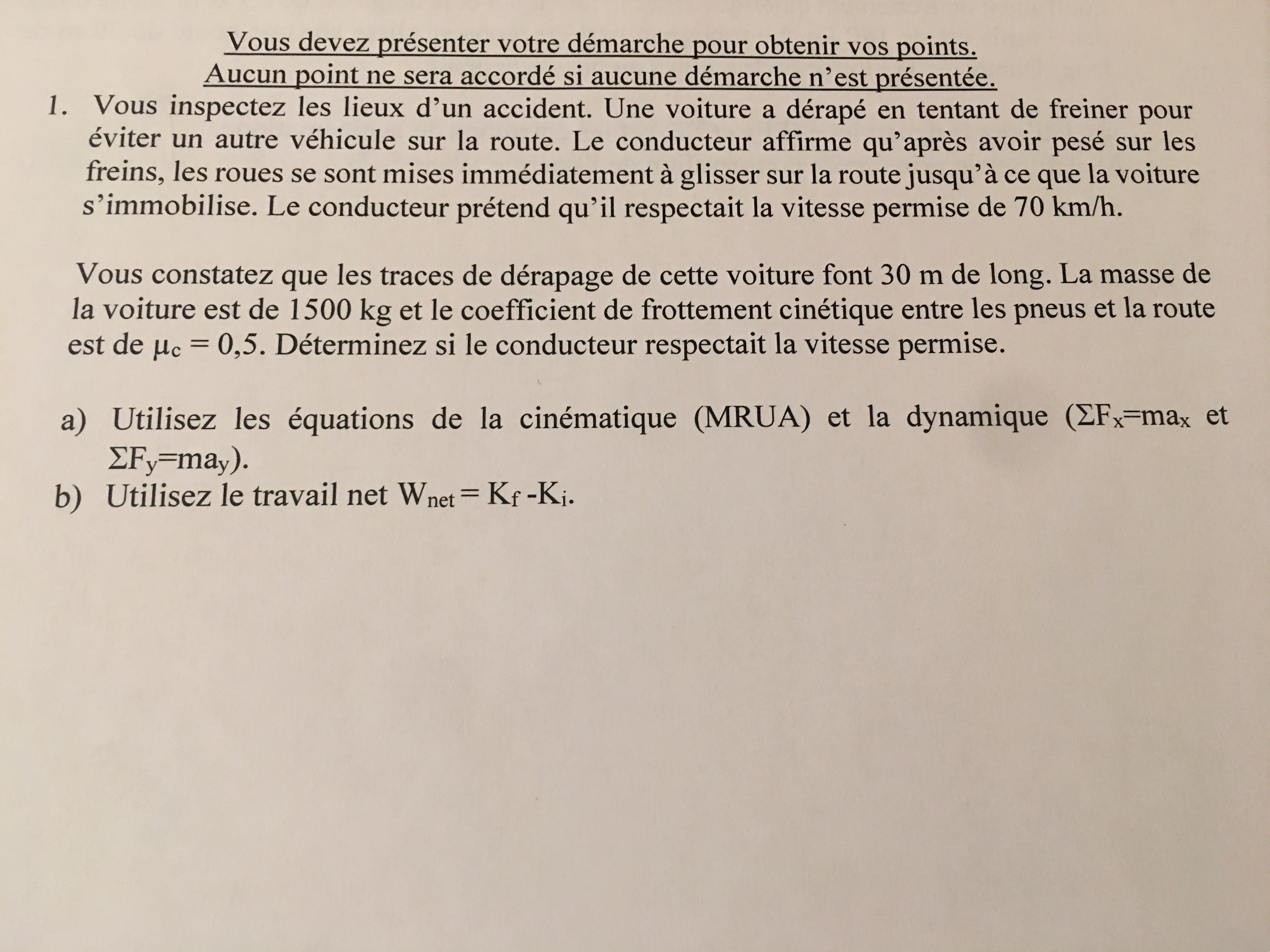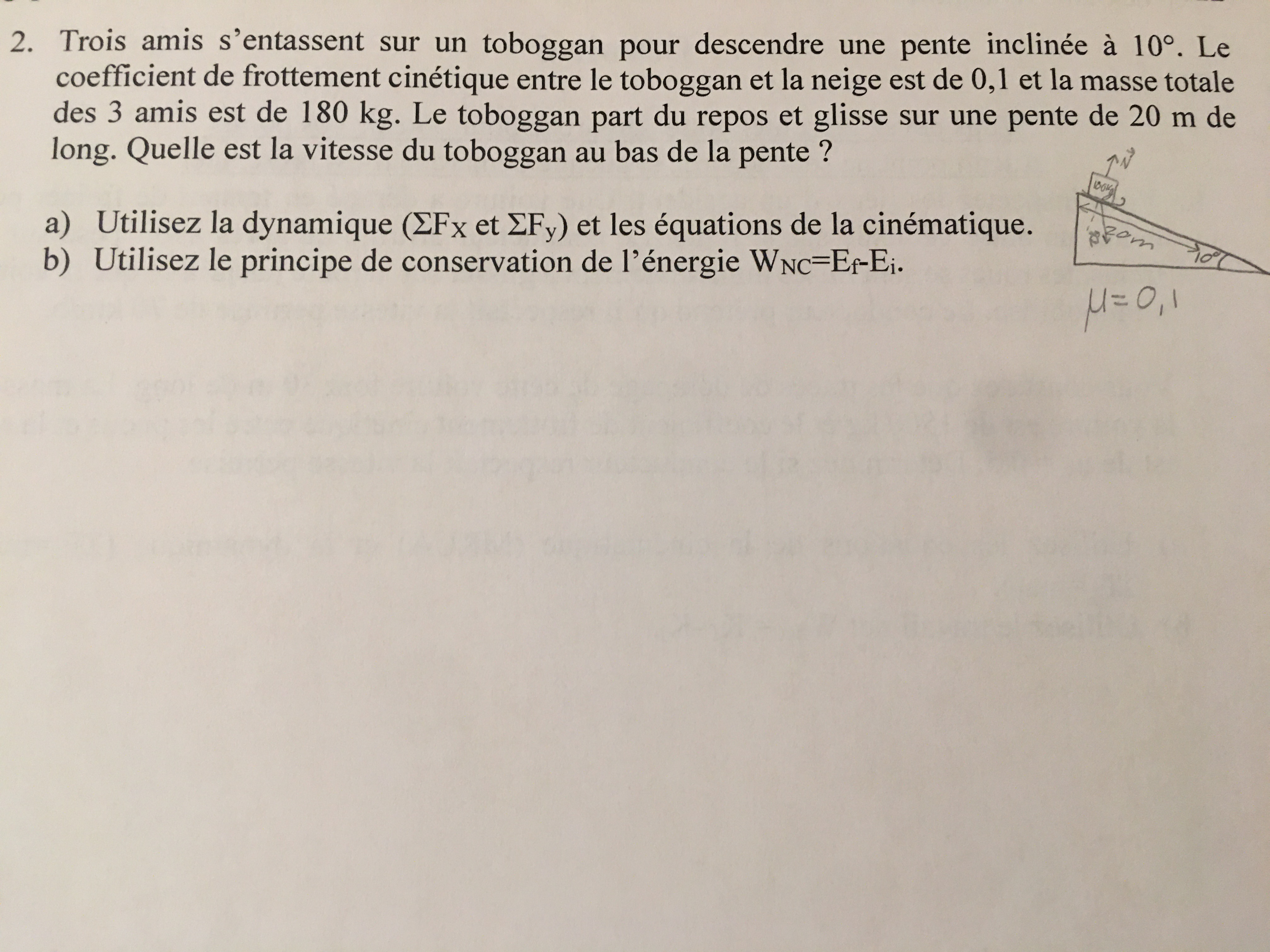 Secondaire 5 • 3aBonjour j'aimerais que quel qu'un puissent m'aider a résoudre et m'expliquer un problem de physique de secondaire 5