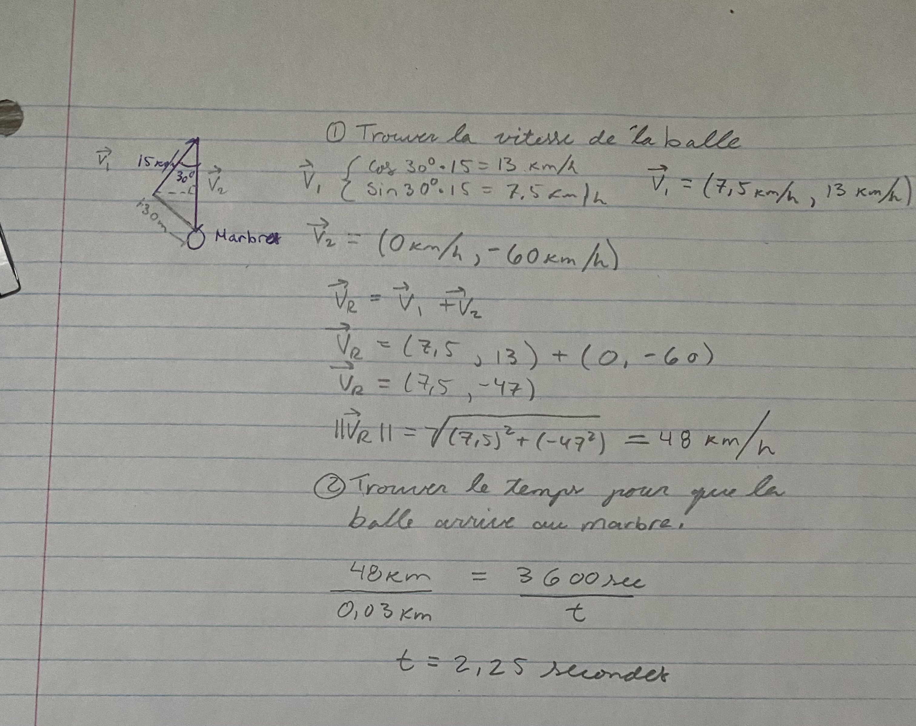 La réponse finale est de 2 secondes. Je me demande si j’ai une erreur, car sa me donne 2,25 s ou si c’est une question d’arrondies.