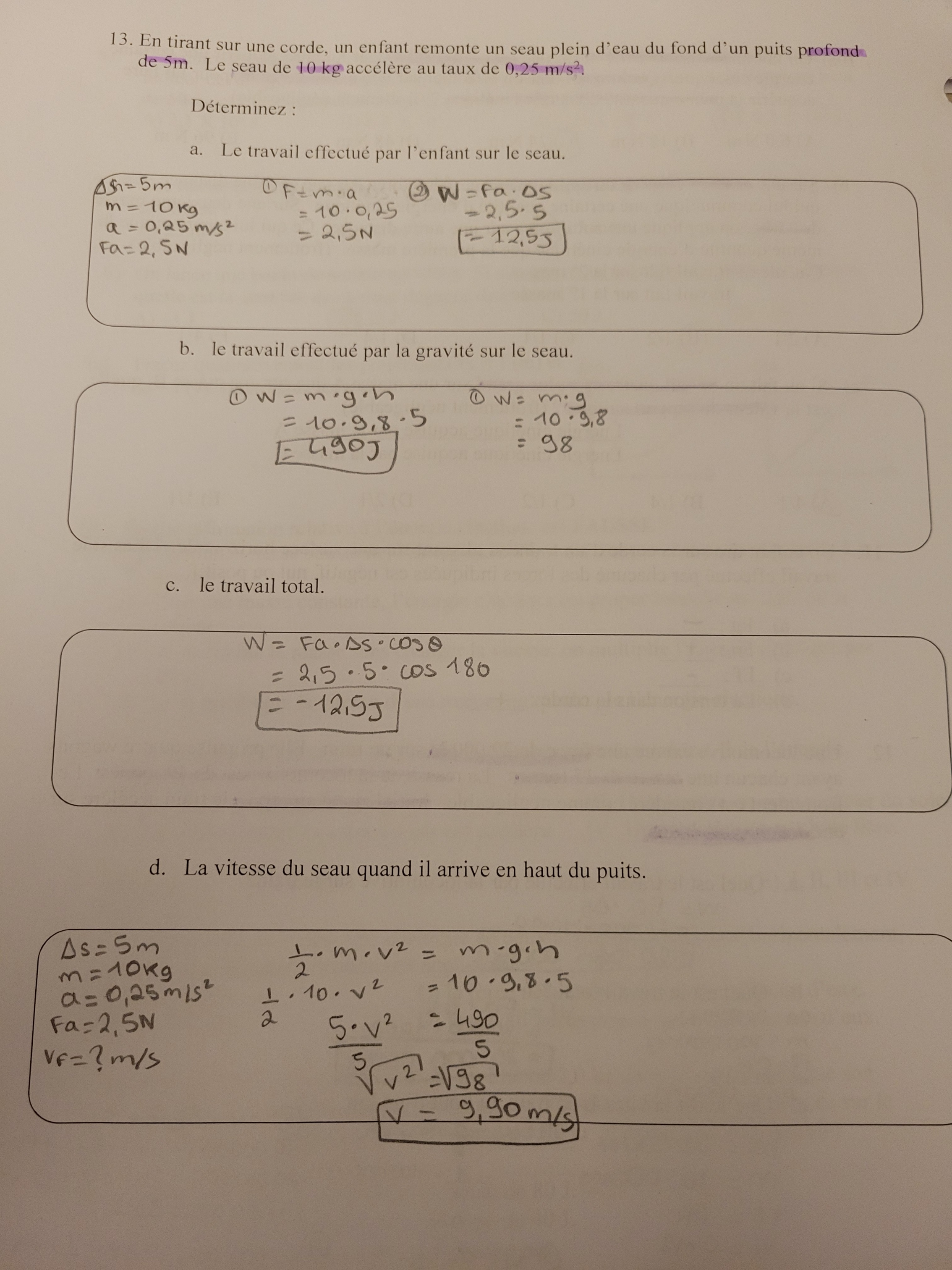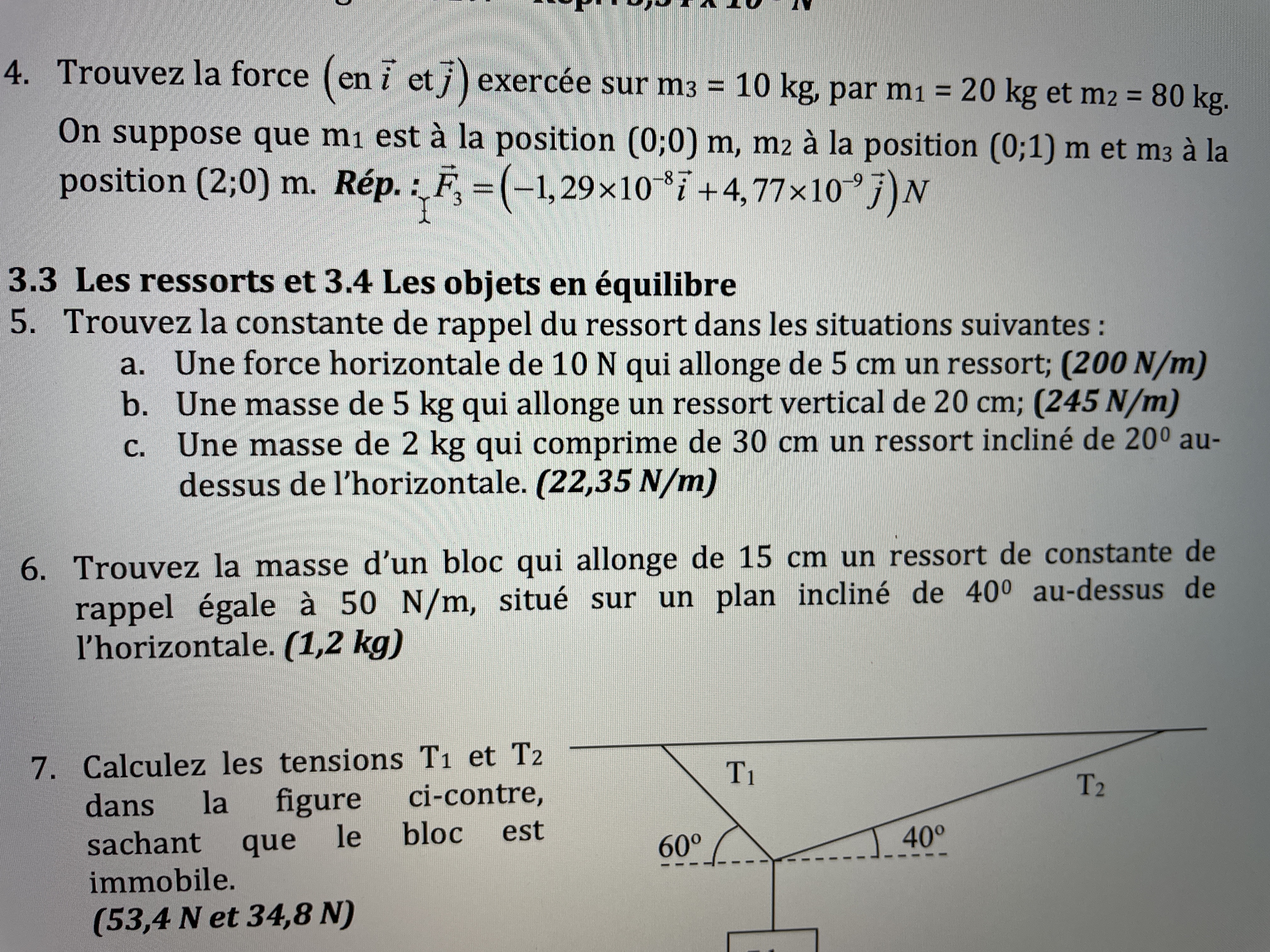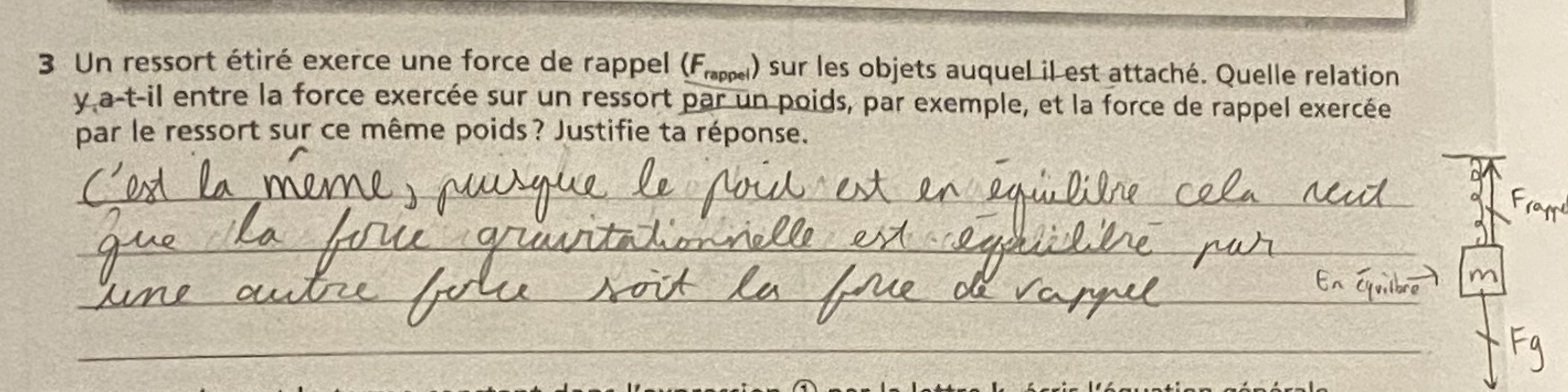 Secondaire 5 • 3aBonjour , je comprend pas pourquoi j’ai pas obtenu la bonne réponse pour le c de la question 5, j’ai calculer la force du ressort et après je l’ai remplacer dans la formule pour trouver la constante de rappel mais je n’ai pas obtenu la même réponse …pouvez vous m’aider svp ?merci