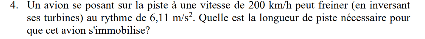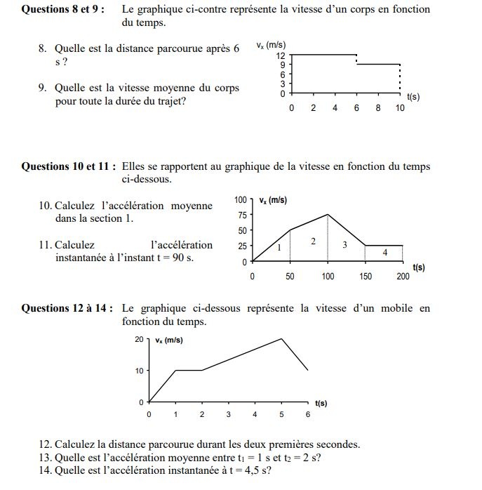 Allons-y avec la première : j'aurais besoin d'aide avec les lettres g à k dans ce numéro.Ensuite, est-ce qu'une accélération peut s'exprimer en km/h^2?