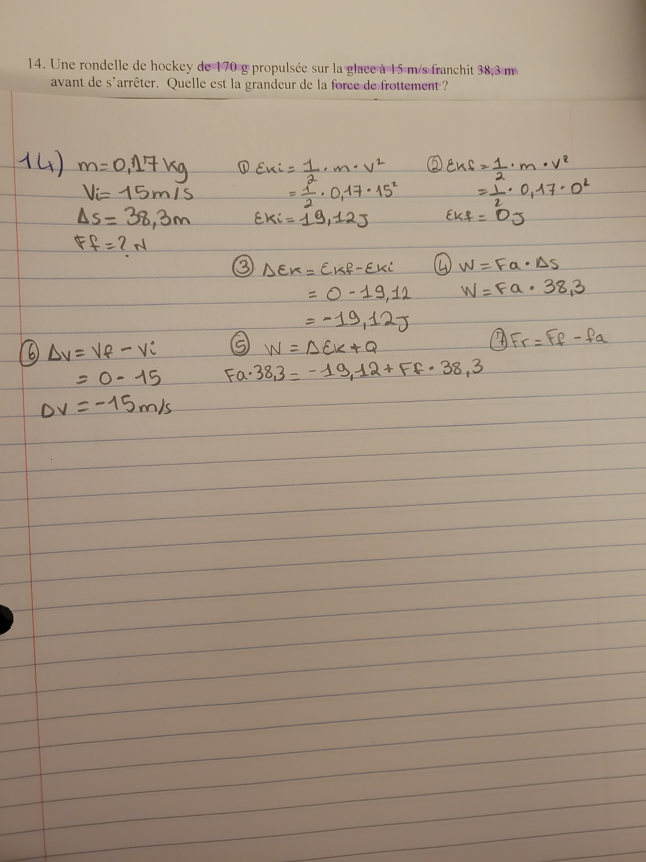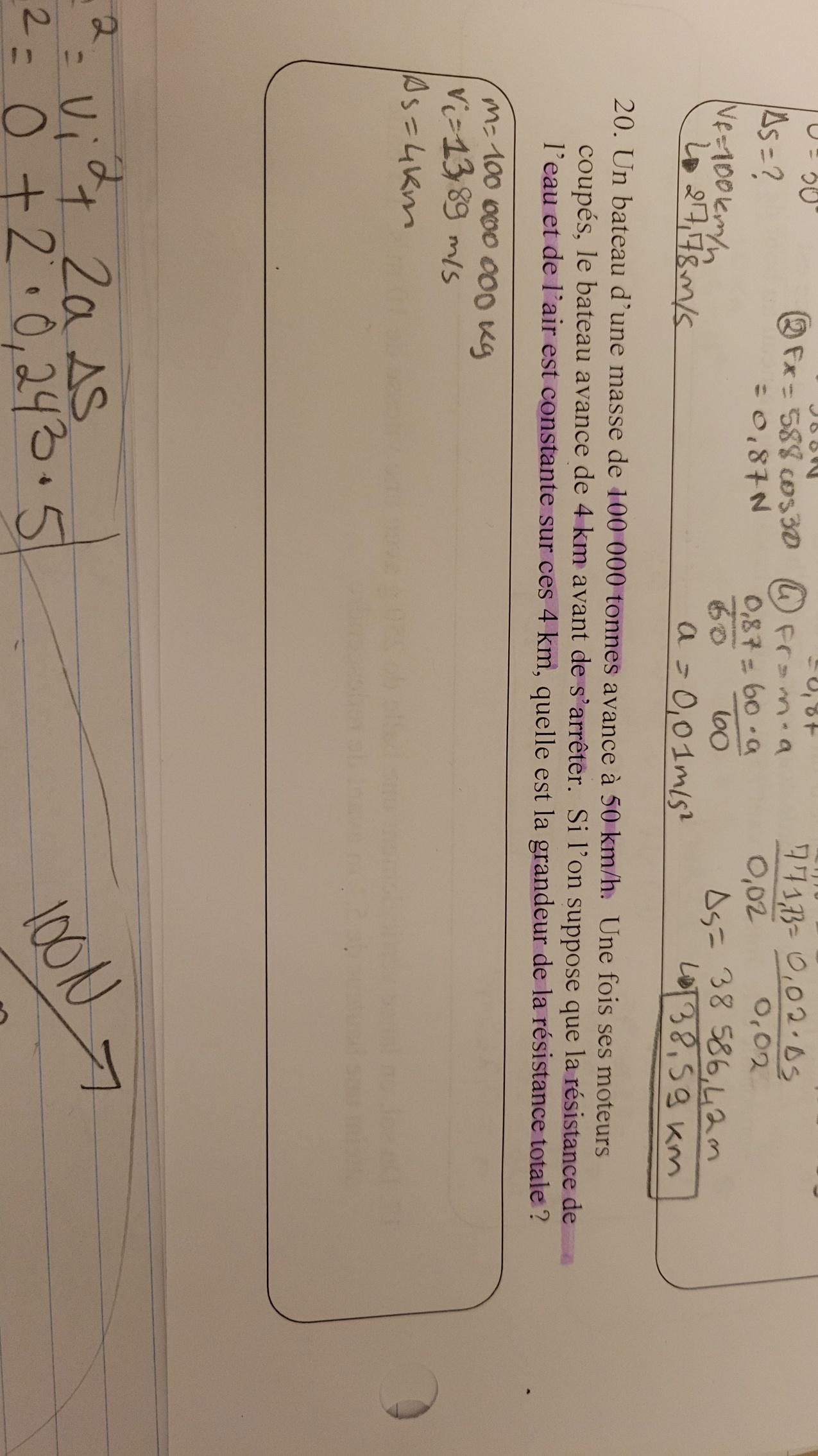 Secondaire 5 • 3aBonjour, j'ai fait un croquis et tout mais je n'arrive pas à trouver la réponse. je sais qu'il faut trouver le delta x , donc faut trouver la vitesse finale en premier? ou je me trompe