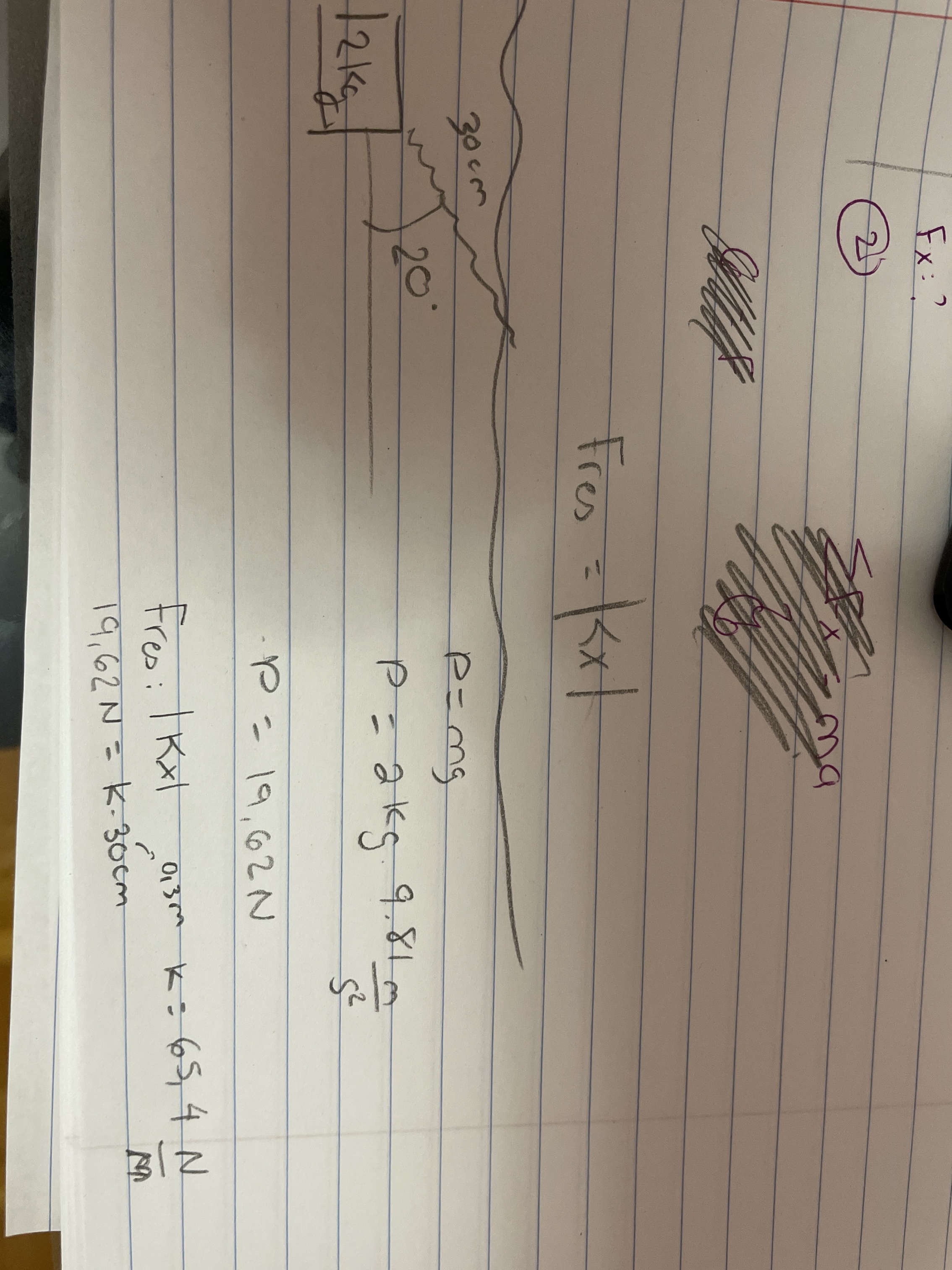 Secondaire 5 • 3aJe voulais vérifier ma réponse avec vous.Je me demande pourquoi la constante est négative (-25 N/cm) dans mes calculs. Est-ce que la force est négative quand on comprîmes? Ou est ce que je mets un signe négatif dans la formule? Dans le cahier, il n’y a pas de signe devant le k