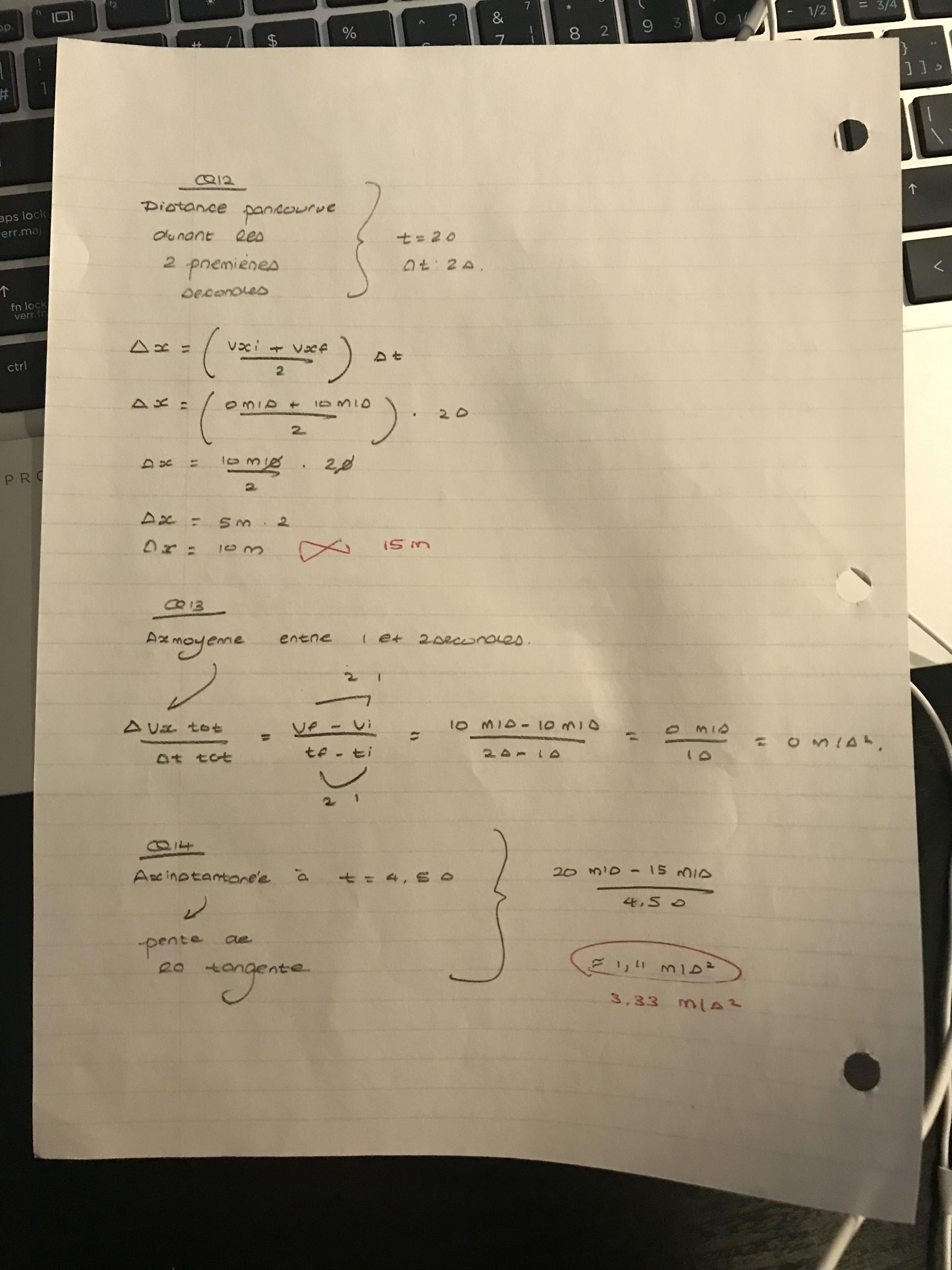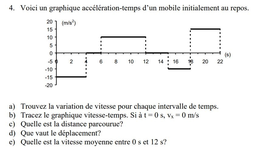 Moi, j'ai divisé l'accélération dans le graphique par la variation de temps... (Mais, ça ne me donne pas la bonne réponse.)Merci et bonne soirée! ;)