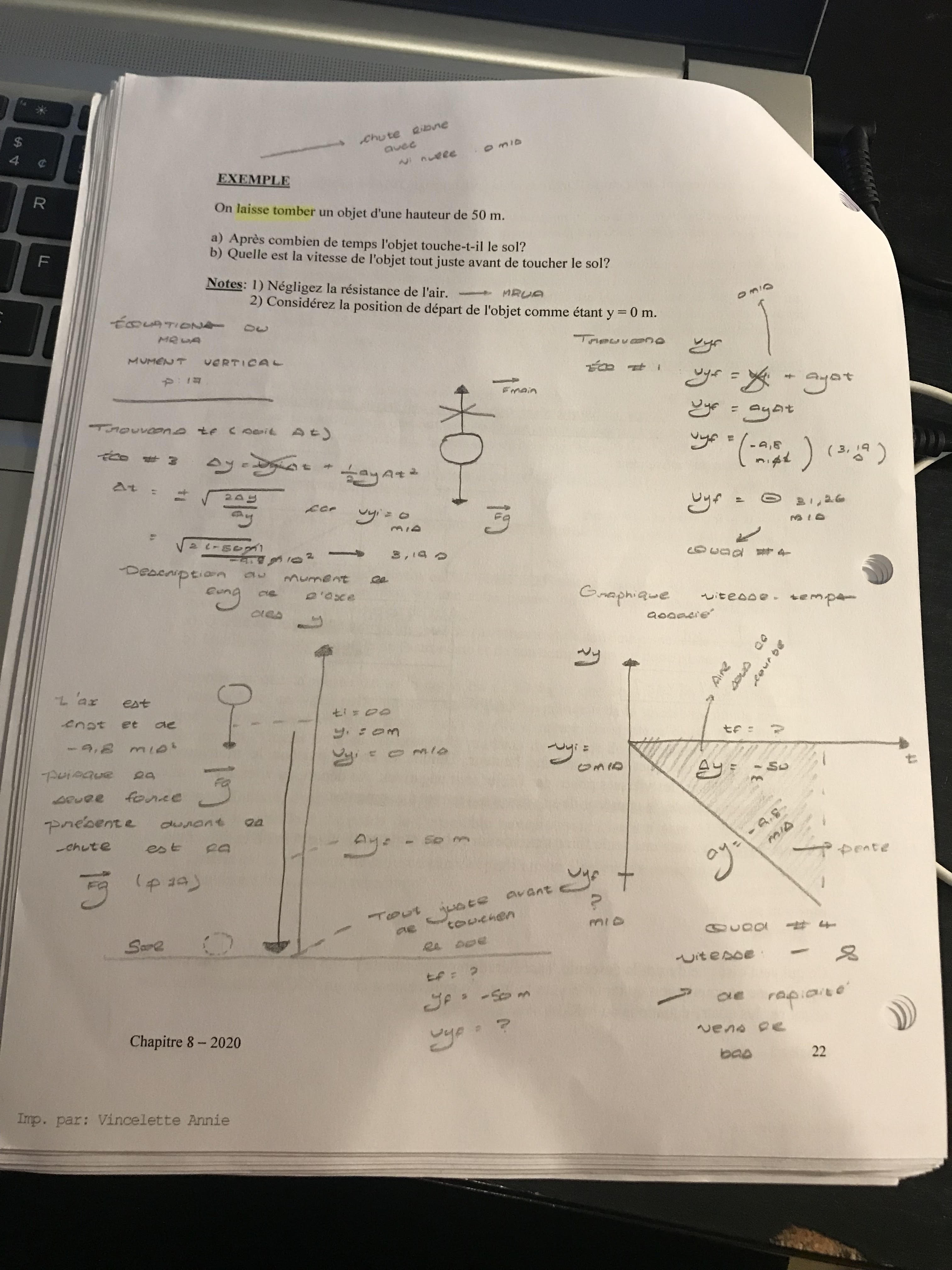 J'ai de la difficulté à comprendre les mouvements rectilignes se produisant à la verticale.