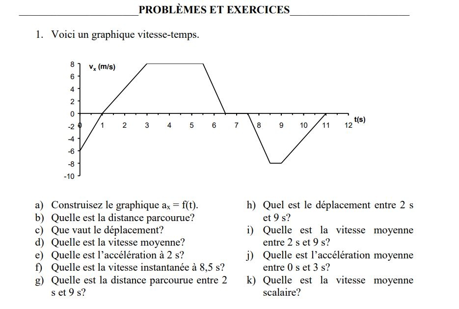 Secondaire 5 • 3aBonsoir, je ne comprends pas du tout cette question en physique mécanique, dans le chapitre du mouvement en une dimension. J'ai également le corrigé.