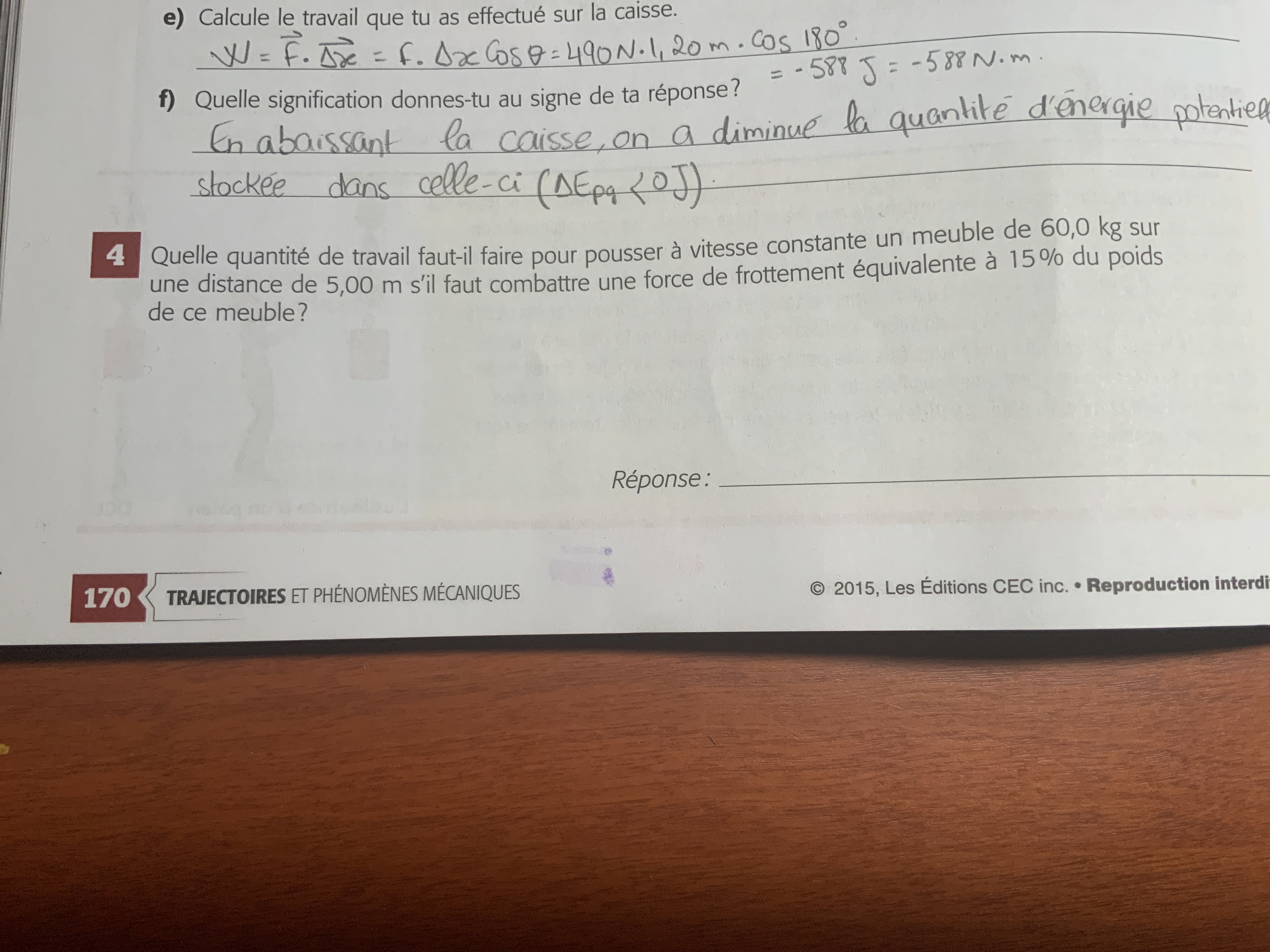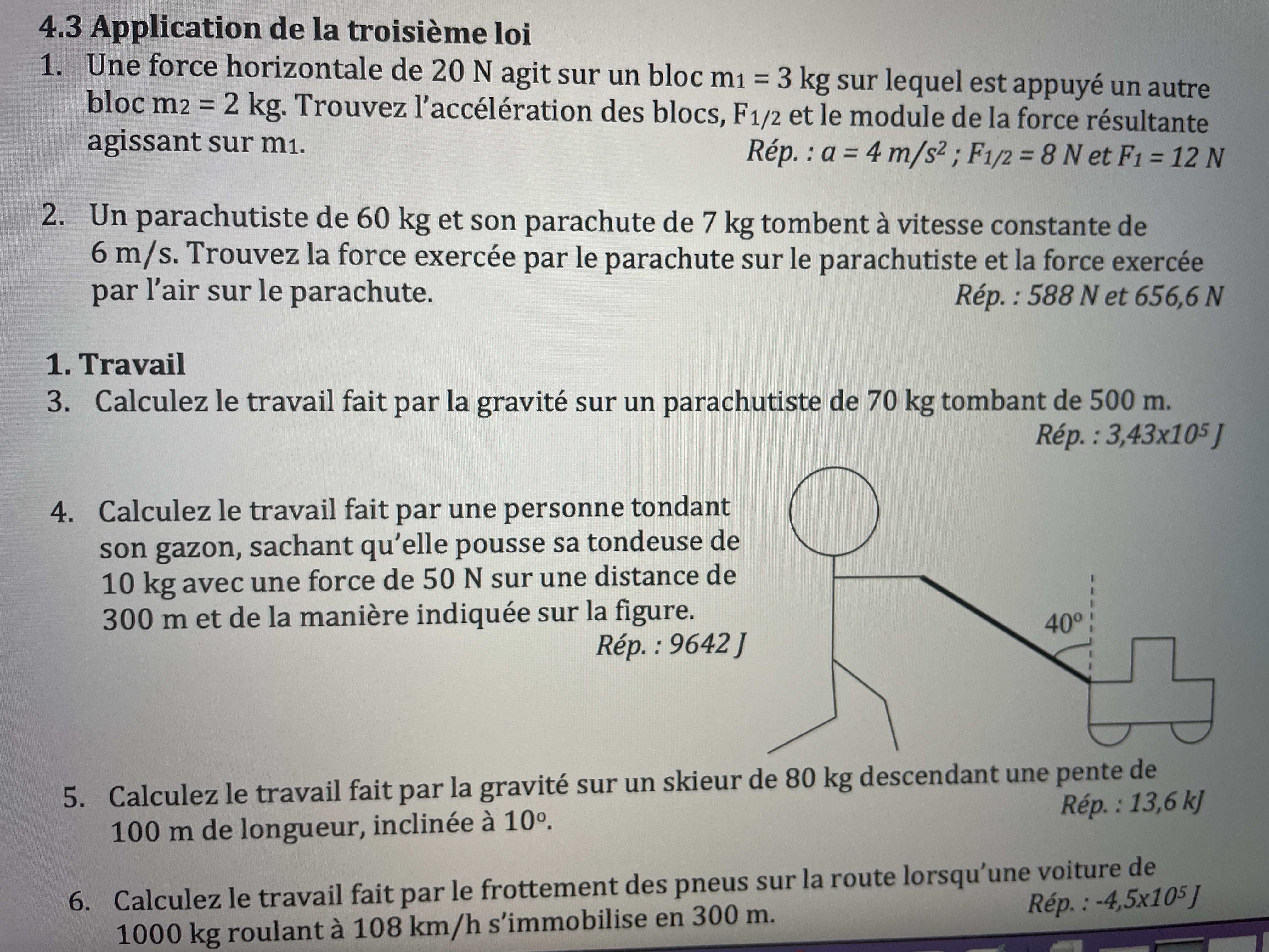 Secondaire 5 • 3aBonjour, pour calculer le travail je sais qu’il y a une formule mais s’il ne mentionne pas d’angle comme pour ce problème au numéro 3 , est ce qu’on met dans la formule cos 0 degrés ?