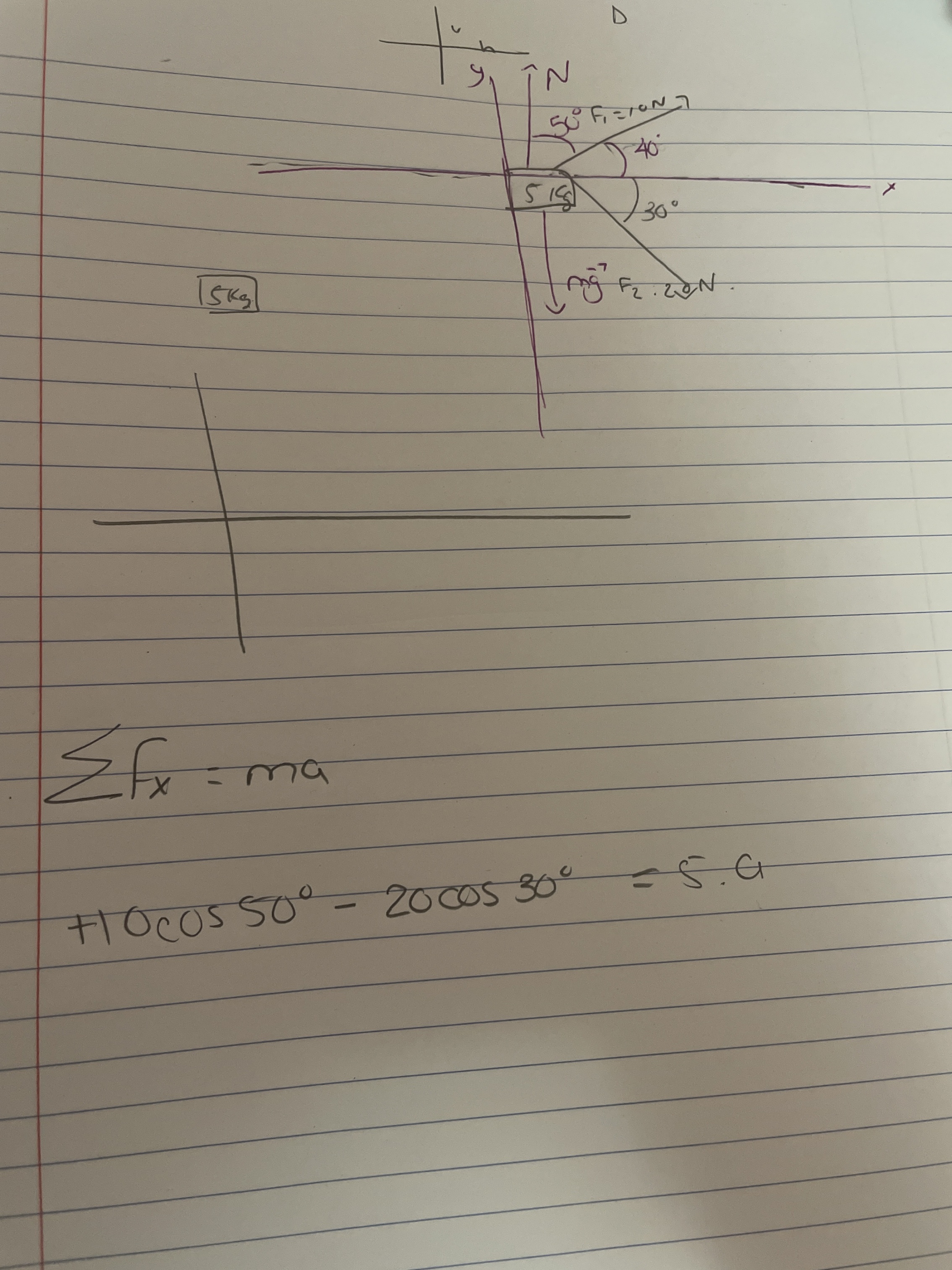 Secondaire 5 • 3aBonjour, pour le numéro 2 j’ai compris quil faut utiliser la formule la somme des forces agissant sur l’axe des y =0 mais comment je vais faire pour savoir quel force agit ou pas sur l’axe ?