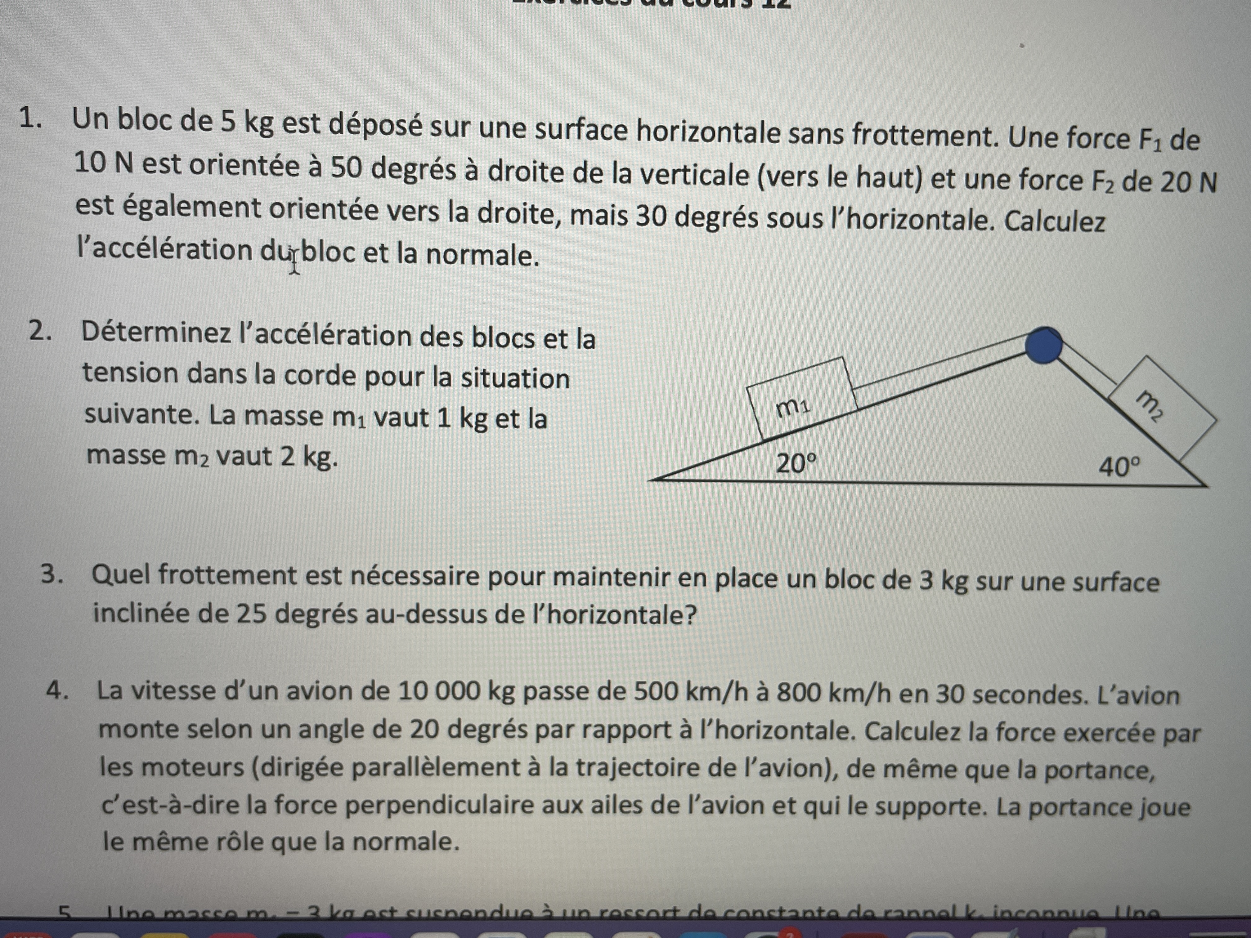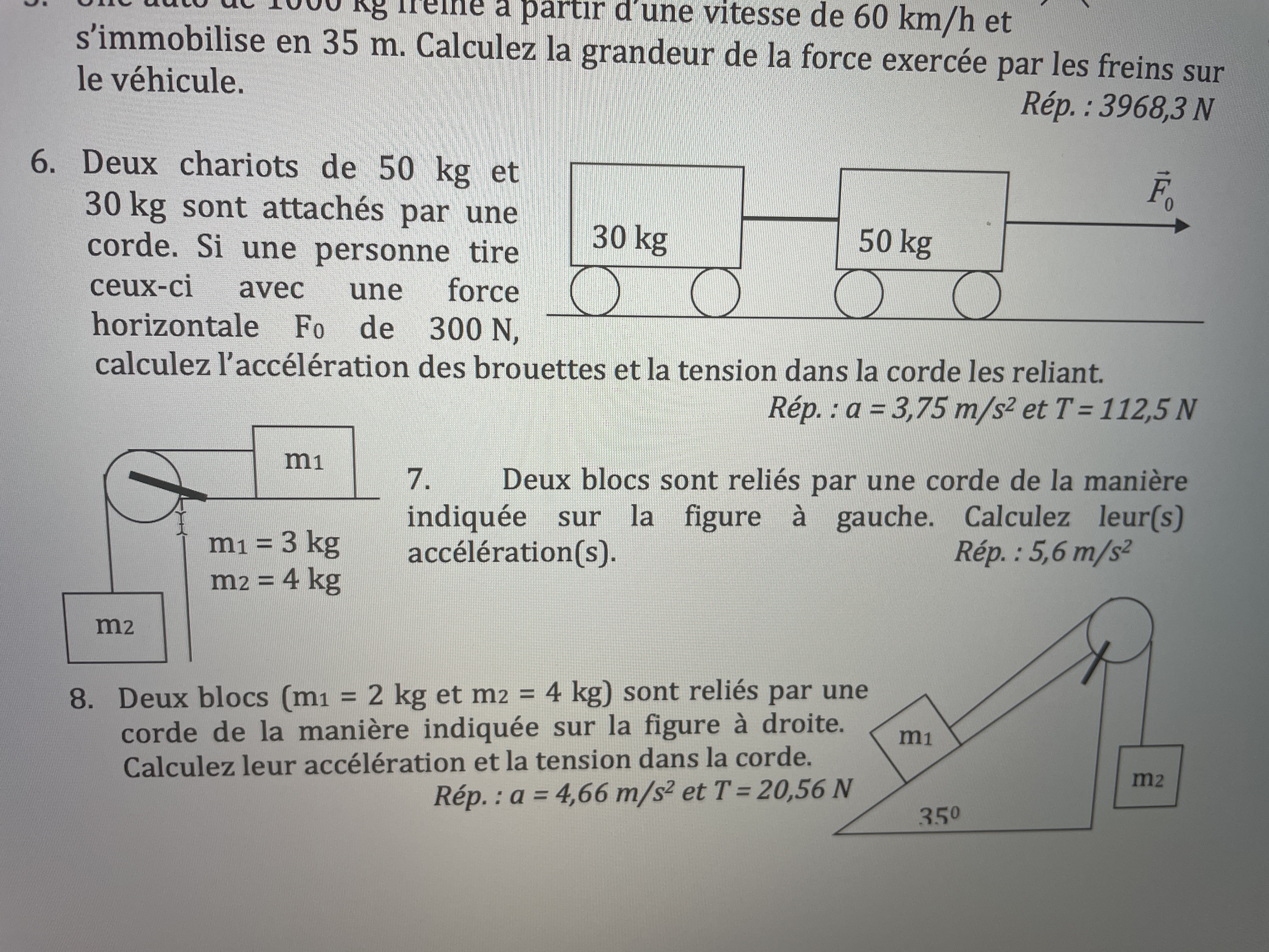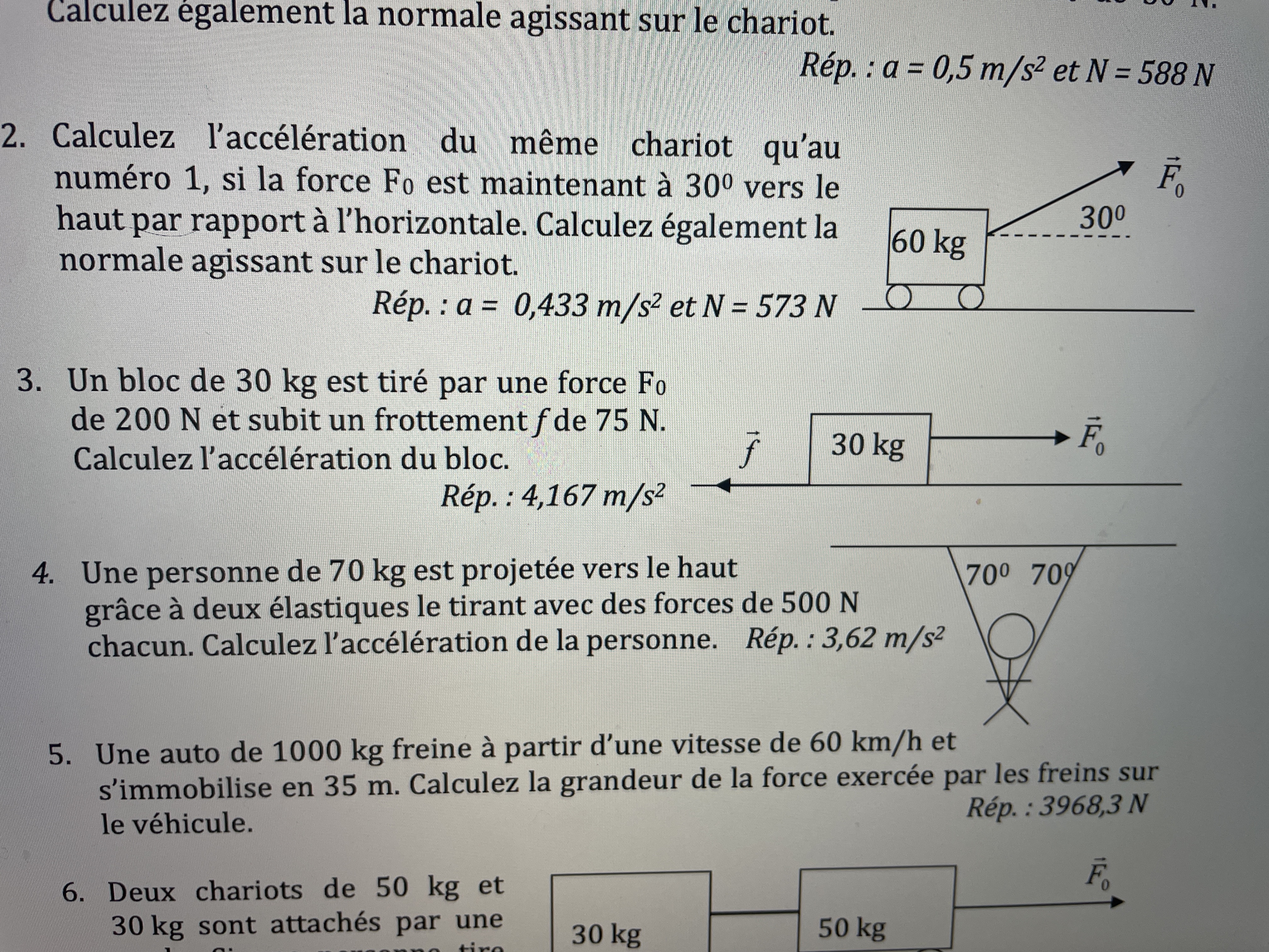 Secondaire 5 • 3abonjour, j’aimerais savoir si j’ai bien représenté la situation pour la question 1 svp,car j’obtiens pas la bonne accélération.