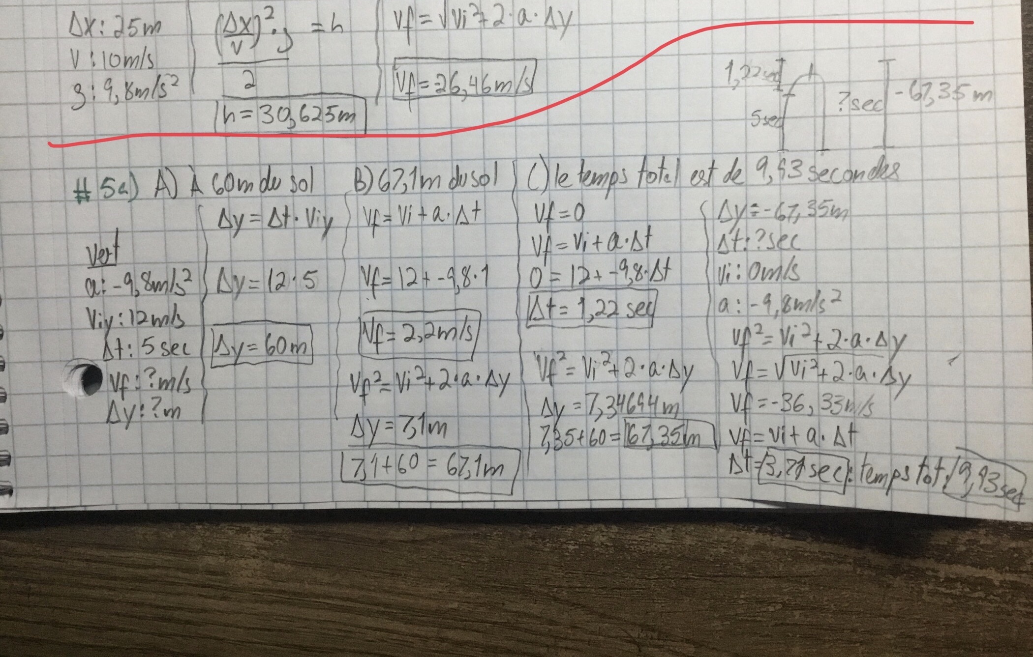 Pour le B, tu traite la poutre comme un objet « régulier » donc tu applique les équations du MRUA avec 1 seconde, 12m/s comme ta vitesse initiale, -9,8m/s^2 pour le a puis tu trouve ton déplacement à l’axe horizontal. Ensuite tu rajoutes ton 60m (7,1m +60m = 67,1m)