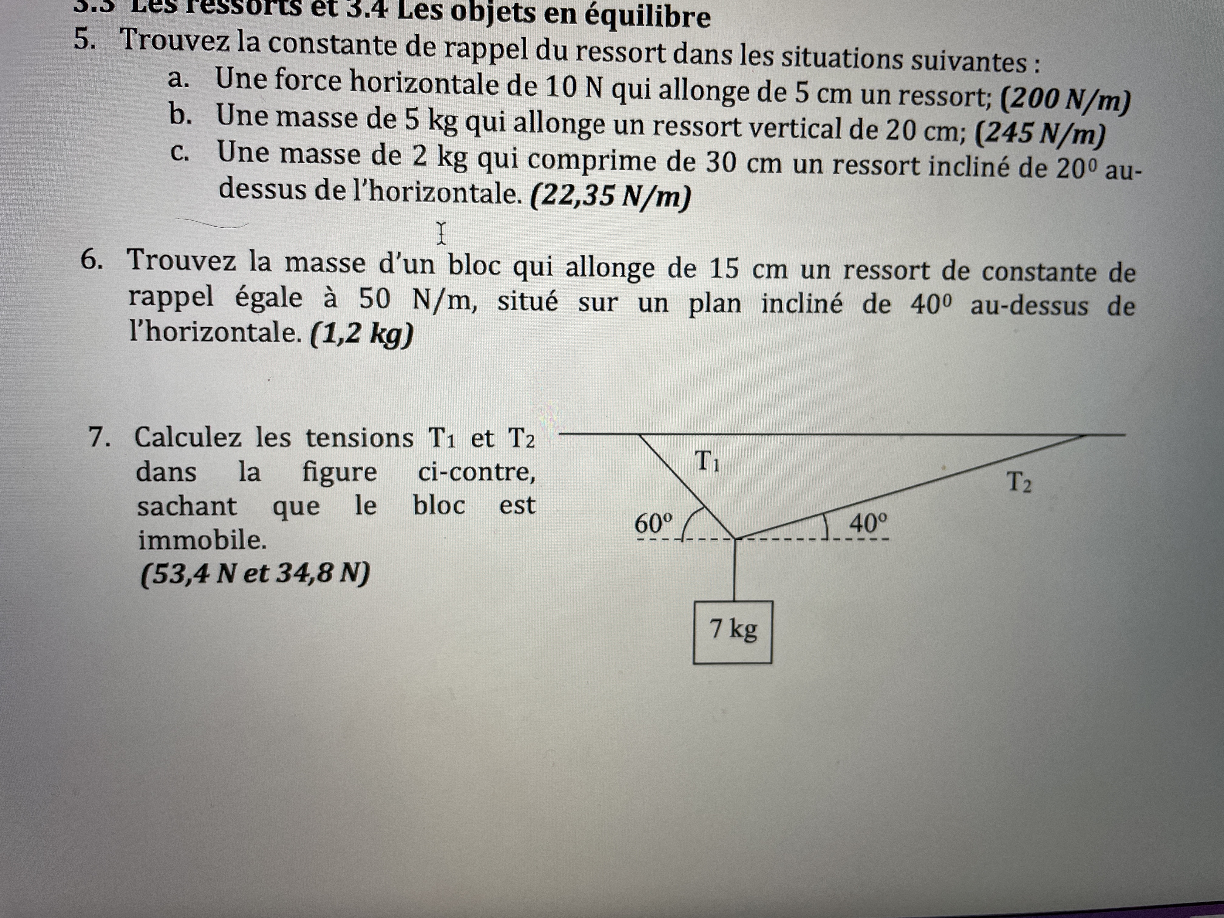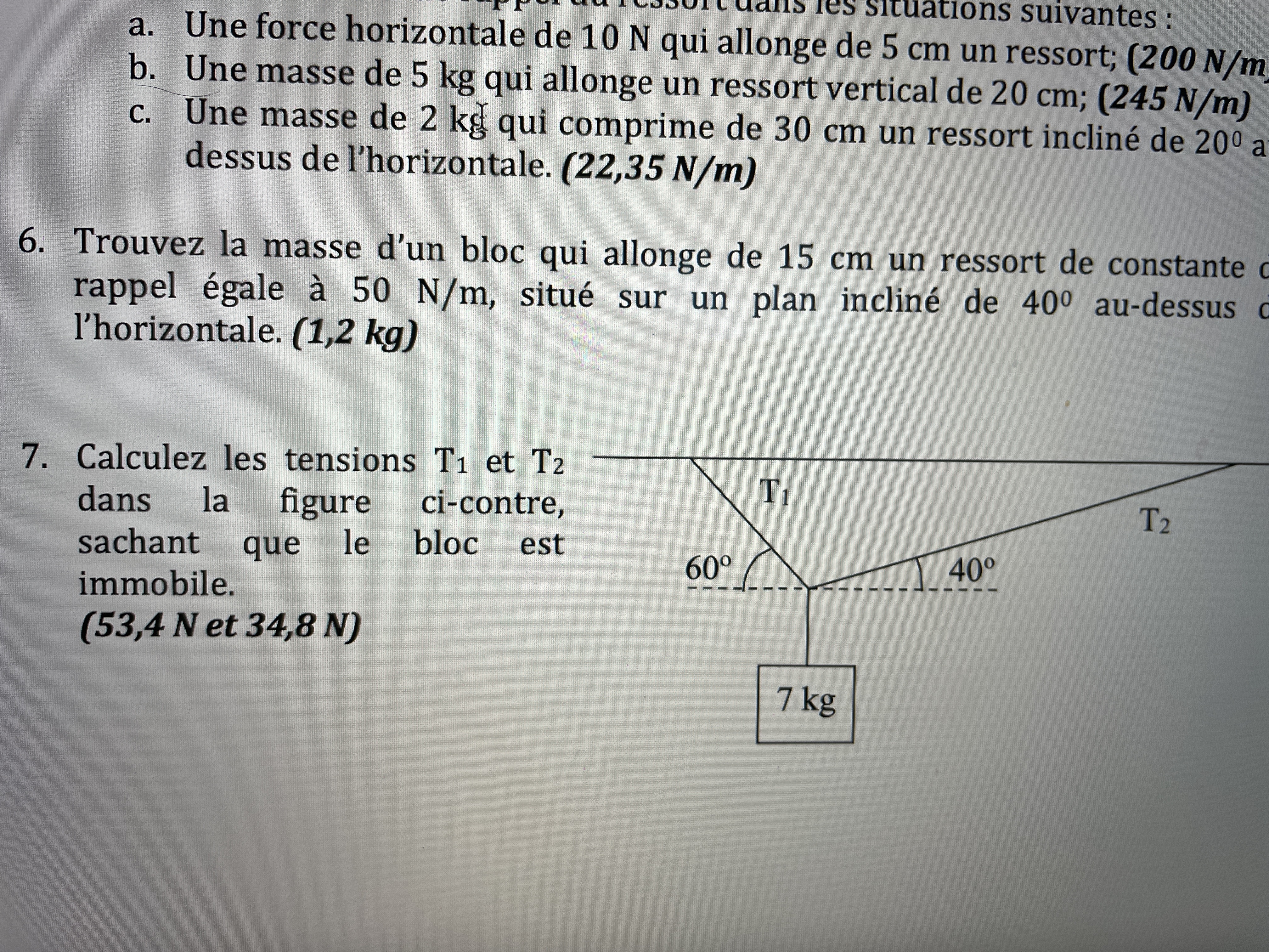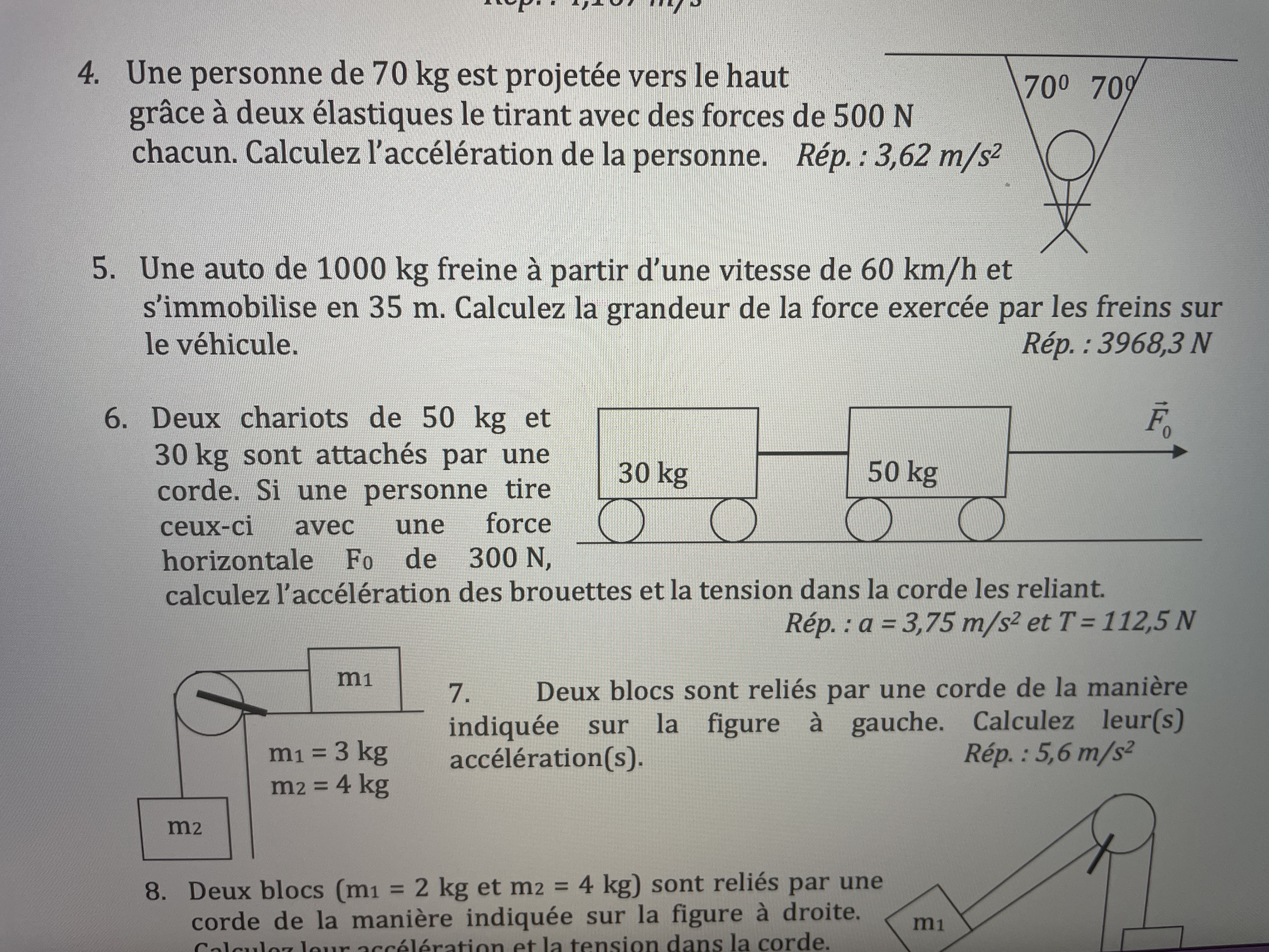 Secondaire 5 • 3aBonjour, j’aimerais savoir comment calculer la tension pour le numéro 6 svp ?merci