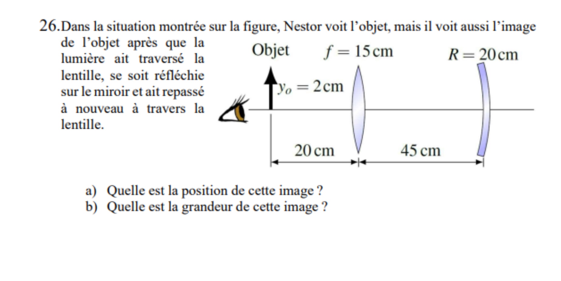 Quelle est la distance entre l’objet virtuelle formée par la lentille et le miroir si celle-ci est derrière le miroir?