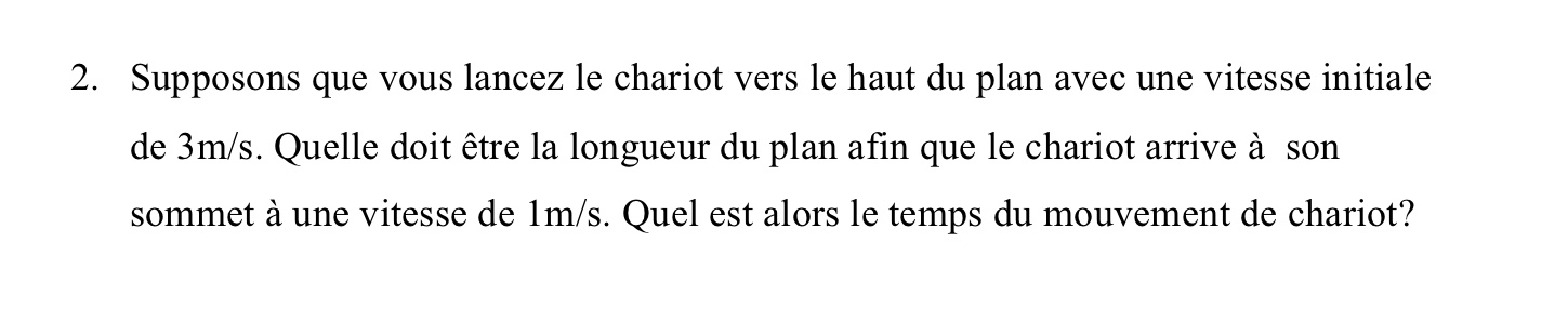 Secondaire 5 • 3aEst-il possible de résoudre ce problème en connaissant seulement l’inclinaison du plan incliné (10 degrés)? Je ne connais pas la masse du chariot