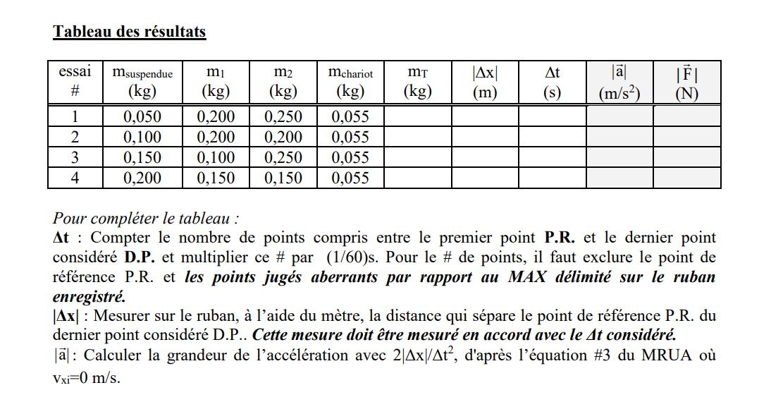 J'aurais juste une petite question sur un labo à faire sur la deuxième loi de Newton.Dans le delta t et |delta x|, dans quels cas, on inclut ou on exclut le P.R et le D.P? (Je vois que pour le delta t, c'est écrit exclure P.R, mais qu'en est-il pour le restant?