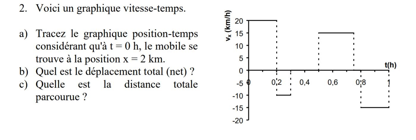 Pouvez-vous svp m'aider? (J'ai vraiment de la difficulté à tracer le graphique position-temps lorsque le graphique vitesse-temps m'est fourni.)