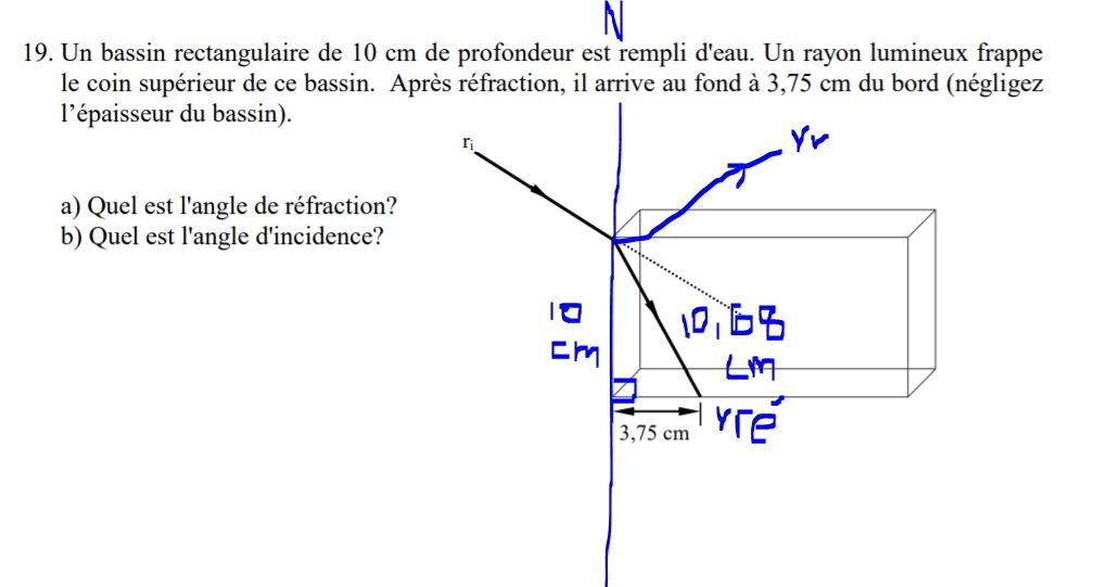 Pour le schéma de cette discussion :https://www.alloprof.qc.ca/zonedentraide/discussion/13407/question/p1, ça doit être fait en traçant une normale au point d'incidence du pinceau sur la surface semi-circulaire où l'angle d'incidence du pinceau doit être déterminée à cette surface.