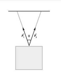 Secondaire 5 • 4aQuel doit être l'angle θ entre les 2 cordes pour que la grandeur des forces F1 et F2 soit égale au triple de la masse suspendue?