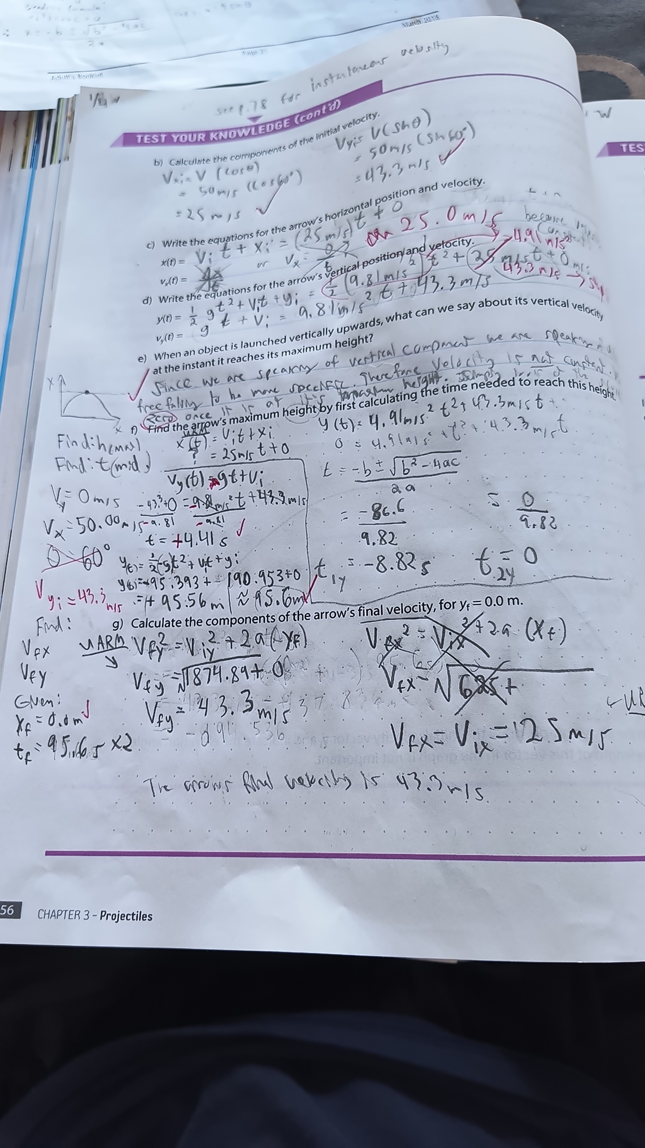 Secondaire 5 • 9mAgain about question 2 p 164. Why is the initial velocity for y not calculated as 0 m/s? It starts at its highest point. Its like as if because we are giving an angle we just use the formula.. is it because it is launched at that position rather than going up then down? I think i just may have answered my own question...