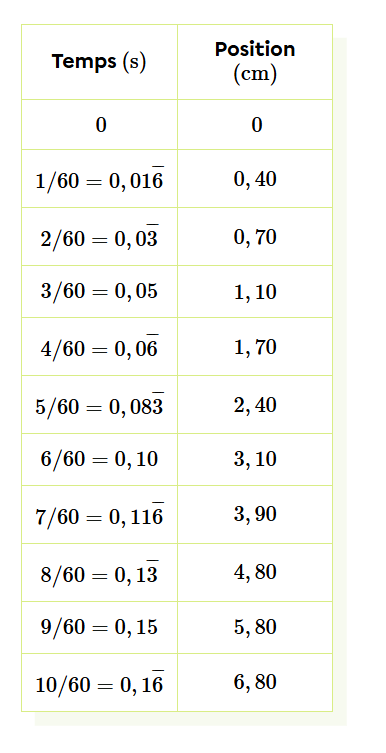 Est-ce qu'il faut d'abord trouver les distances (en faisant : distance initial -distance finale) et ensuite diviser toutes les distance par 1/60 ?