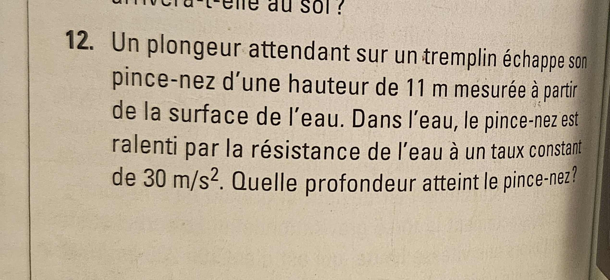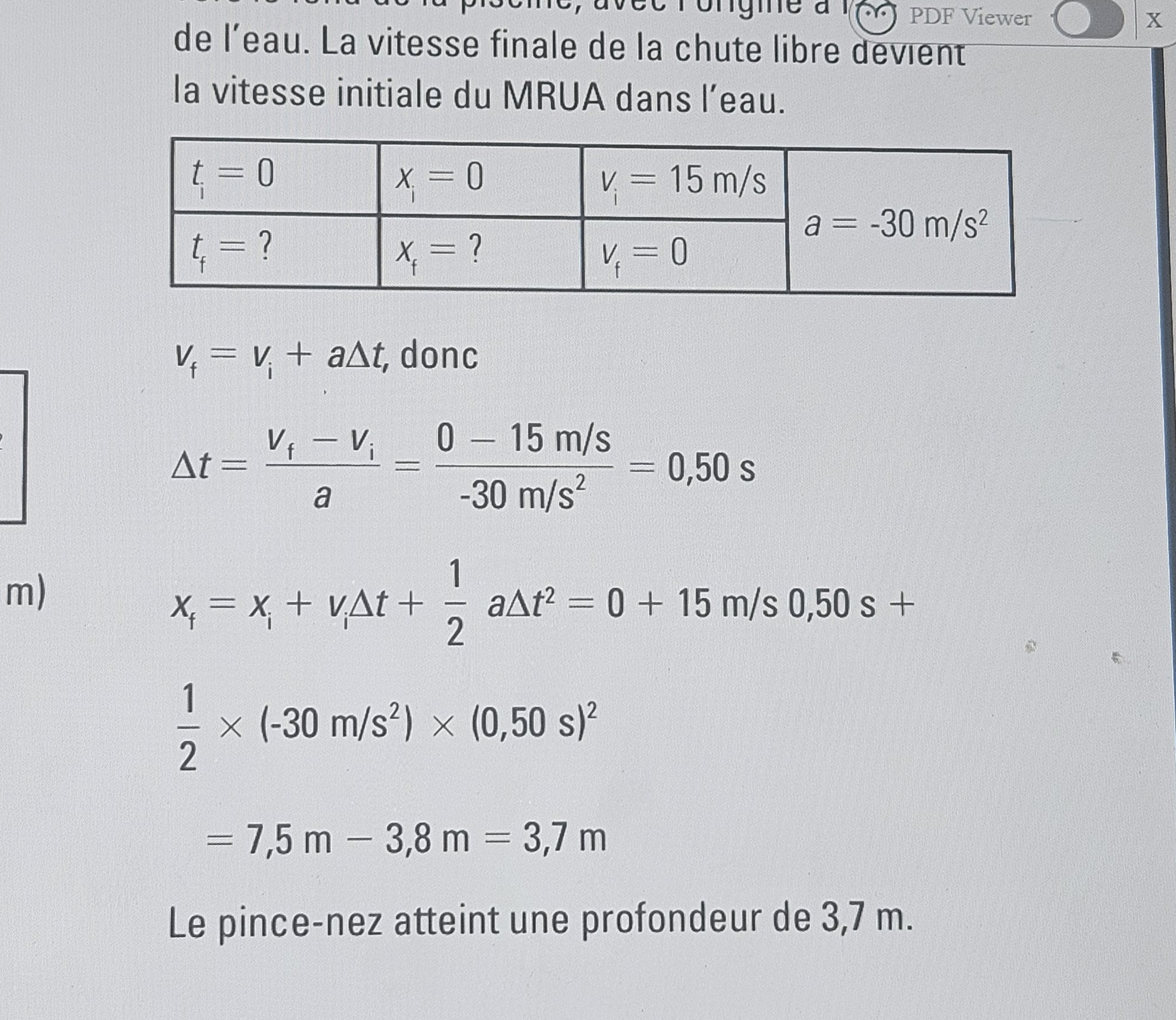 Secondaire 5 • 9mBonsoir! Pourquoi la vitesse de 15m/s n'est pas négative quand on est rendu dans l'eau? N'est elle pas dirigée vers le bas? Merci!
