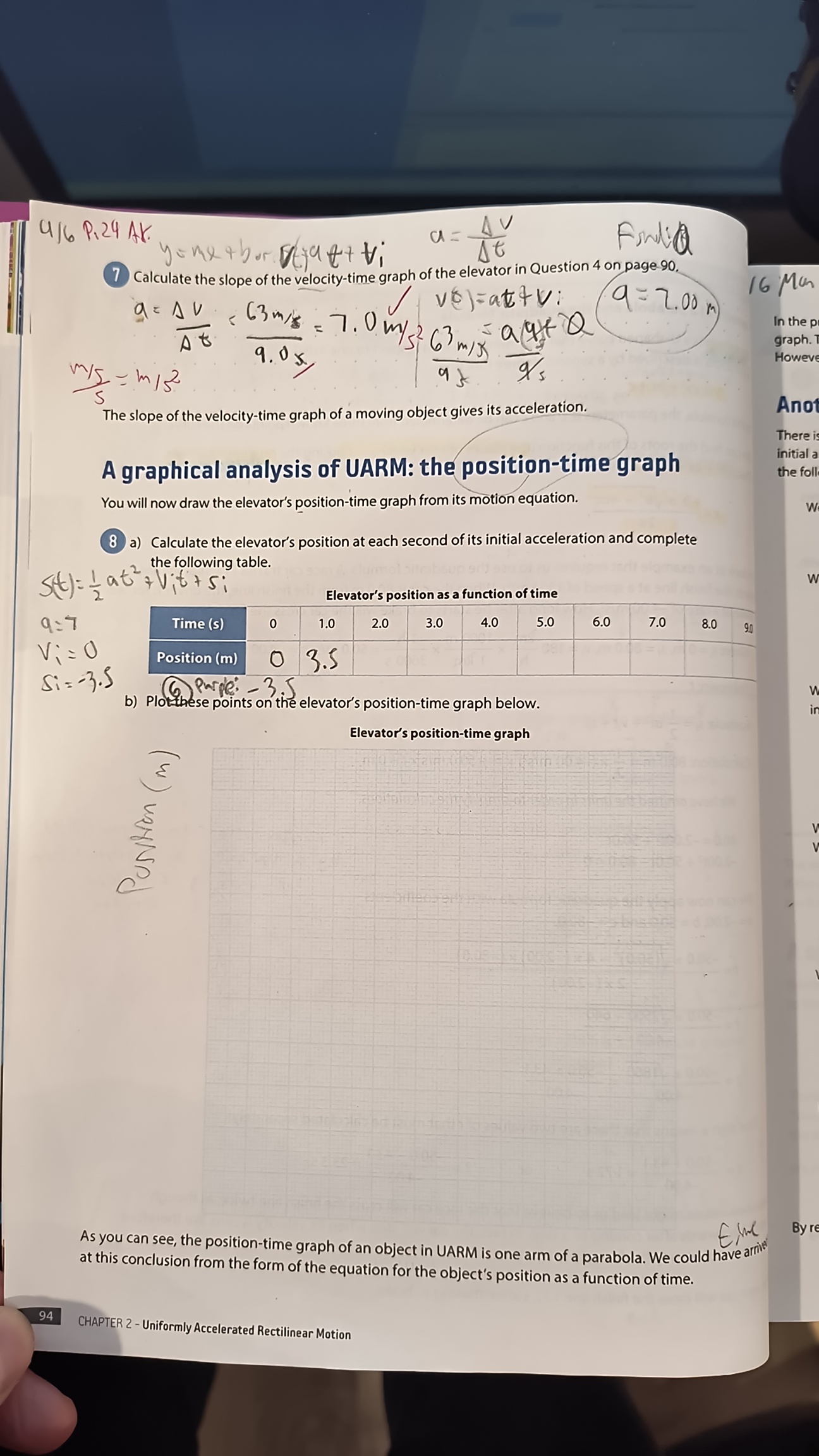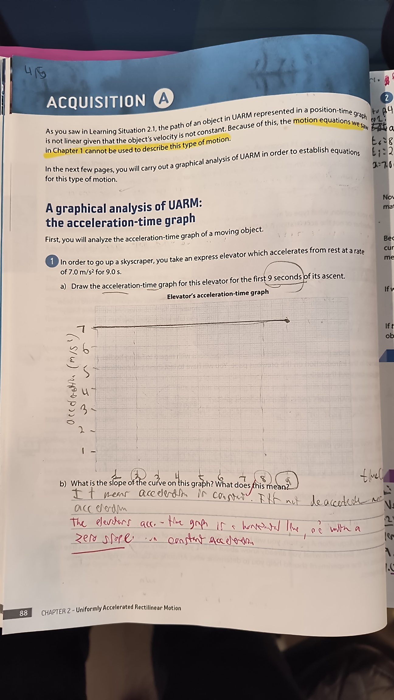Secondaire 5 • 10mI'm this question ok find it a bit contradictory. Is it just me or the fact that they ask us to refer to question 1, one can assume the initial distance is at 0 meters. But after seeing the answer key they put - 3.5. is it just me or it's kind of ambiguous? This is regarding question 8.a. chapter 2 UARM.