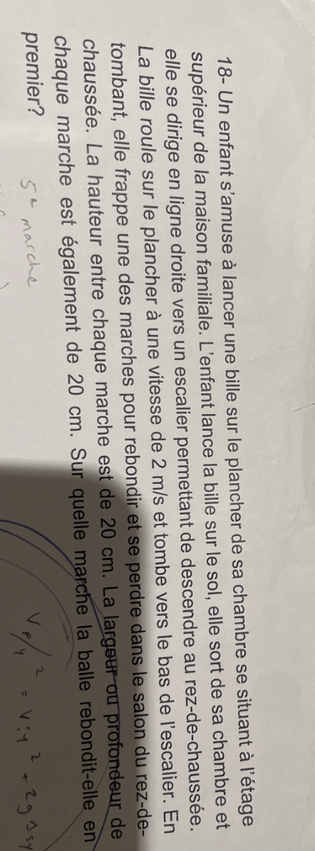 je ne comprend pas avec quelle formule et quelles étapes je dois réaliser ce problème. Est ce que je peux mettre mes données dans une grosse formule et mettre -1 m au Delta y
