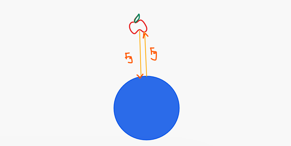 En fait, on dit que deux masses placés à une certaine distance exercent une force entre eux, c'est-à-dire qu'ils s'attrirent mutuellement.