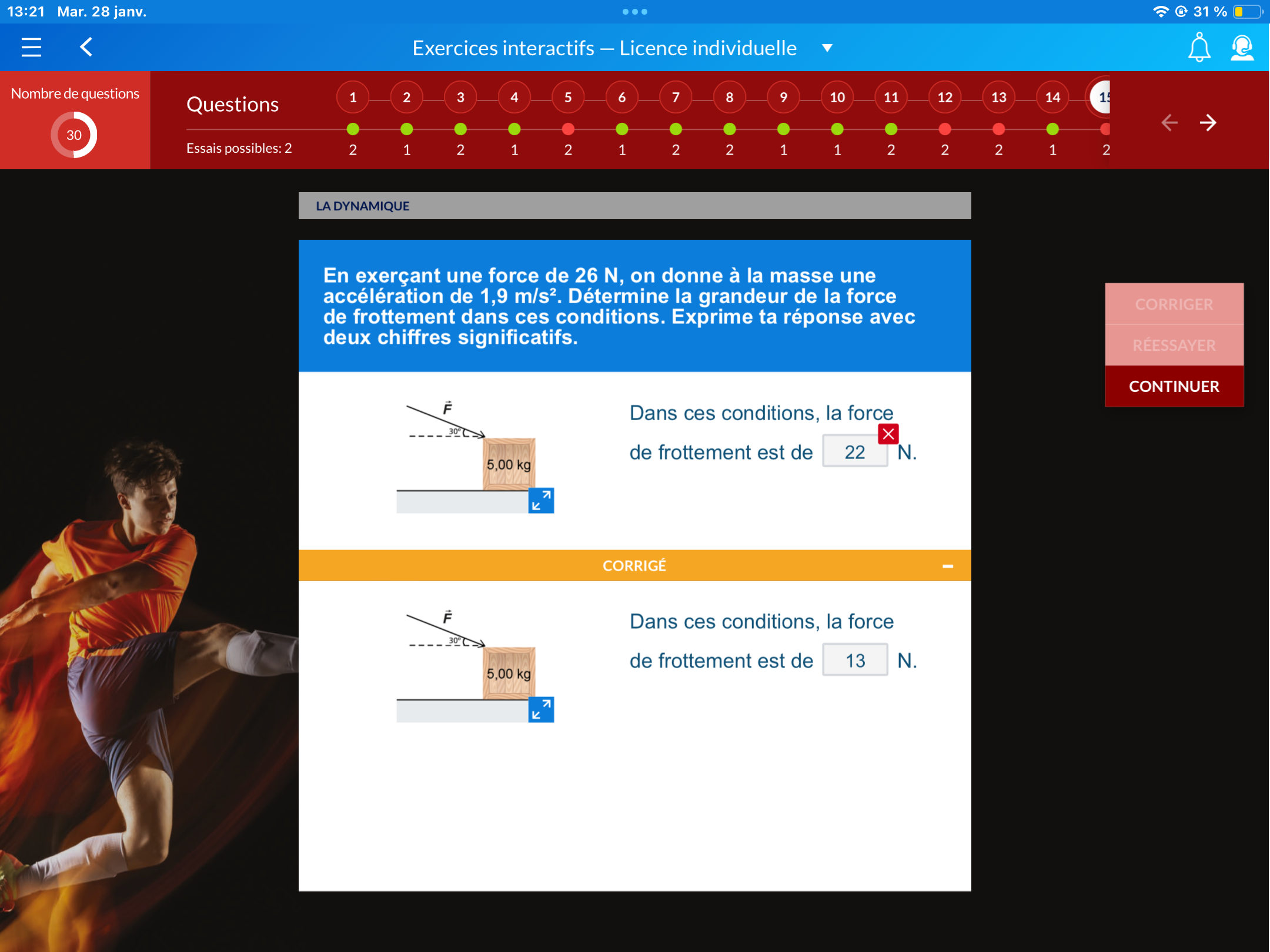 Cos150°26N x Ff = 5 kg x 1,9 m/s2