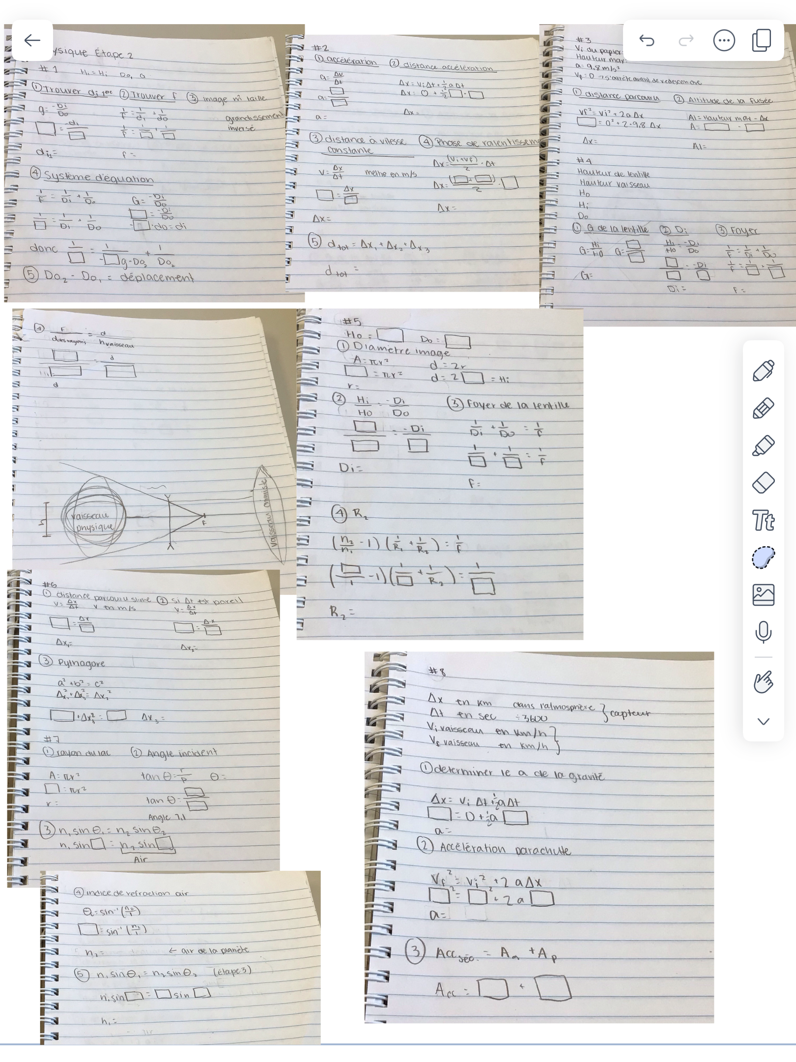 Secondaire 5 • 10mBonjour voici des numéros de physique où nous n’avons pas les données pour l’instant (nous les recevrons plus tard) et nous devons résoudre ces problèmes algébriquement à l’aide de formules pour par la suite, une fois que nous allons recevoir nos données, nous pourrons insérer les données dans nos formules et pouvoir résoudre complètement les problèmes. Voici comment j’ai résolu chaque problème. Je me demandais si mon raisonnement était bon et si lorsque que je vais insérer mes données j’obtiendrai les bonnes réponses?