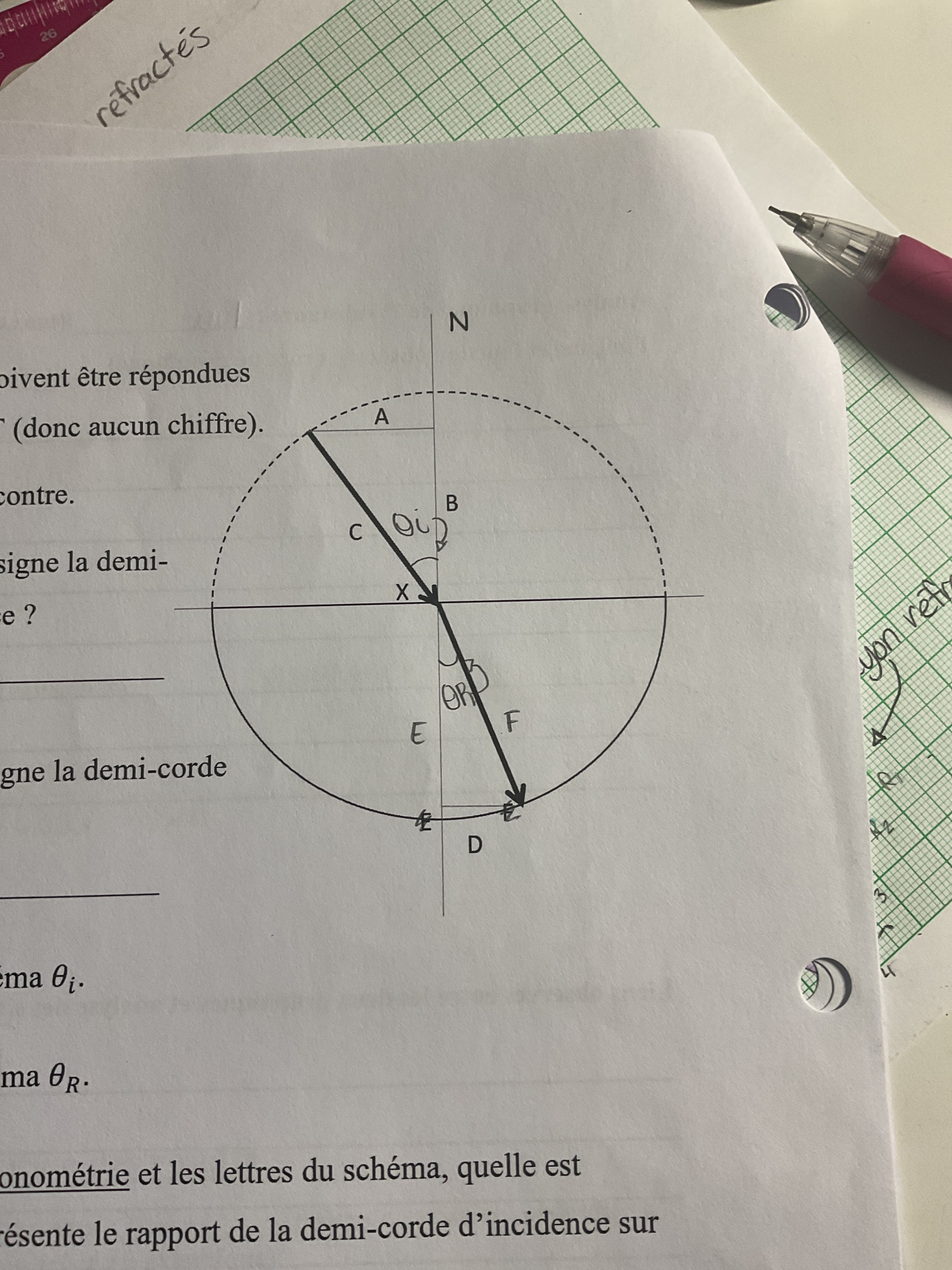 Secondaire 5 • 1aJe fais un laboratoire en physique sur la réfraction et à la fin du rapport il y a une section de question à laquelle nous devons répondre algébriquement seulement. Une des questions est celle-ci :