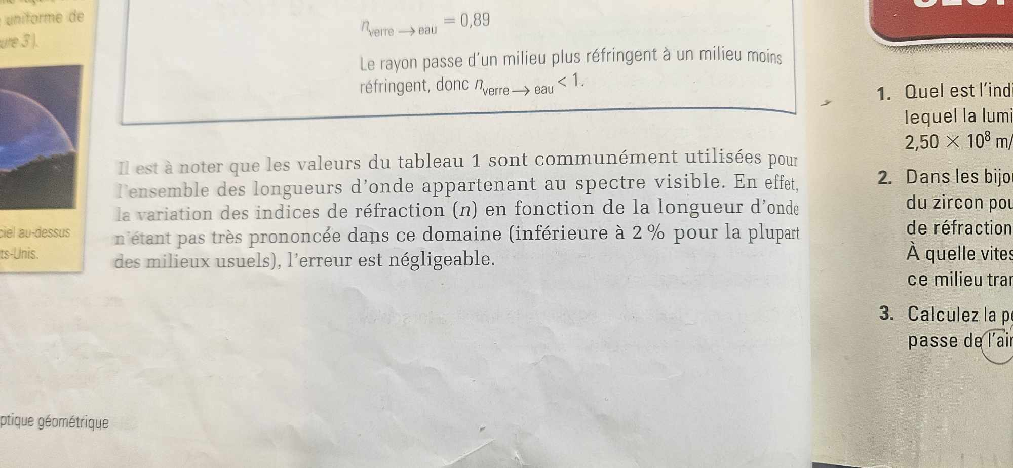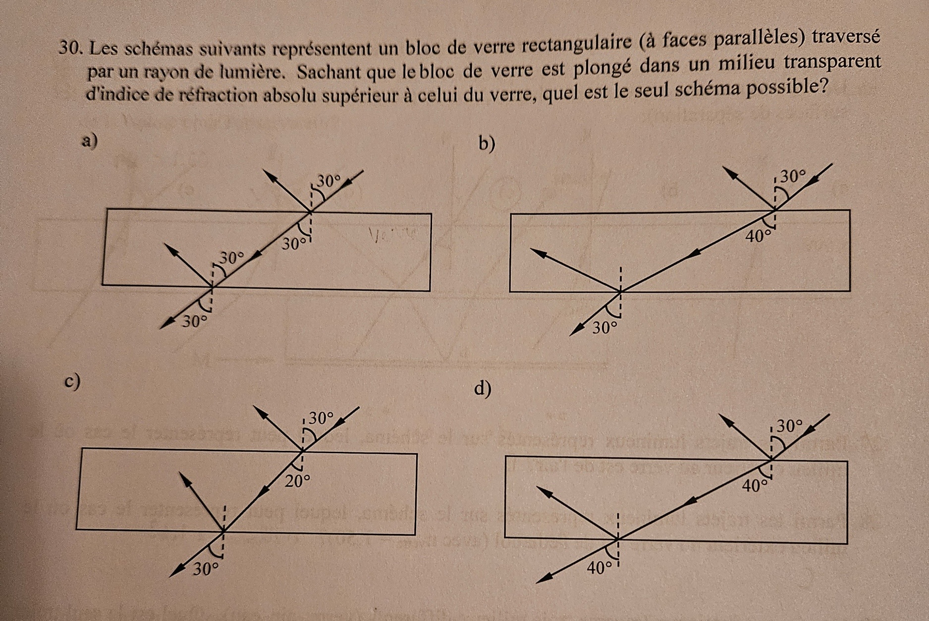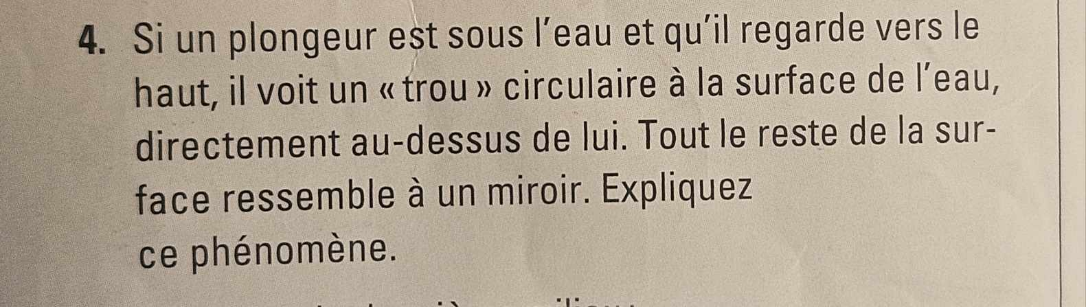 Secondaire 5 • 1aBonjour! Pourriez-vous m'aider avec ce problème? Je pense que c'est à cause de la réflexion totale interne, mais je n'arrive pas à élaboré ma réponse plus que cela