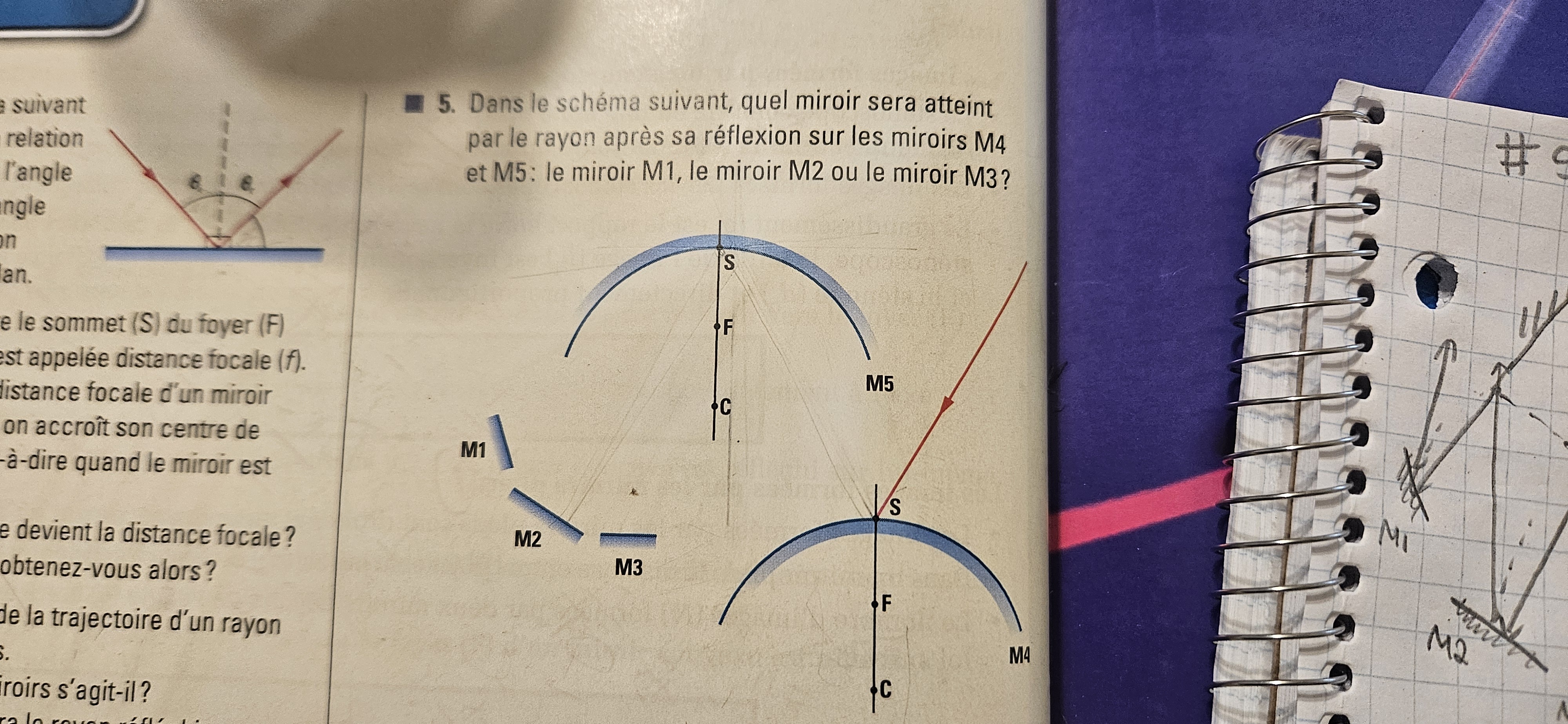 Secondaire 5 • 1aBonjour en lien avec ceciMais, on parle pas de la rotation du miroir non? Juste du rayon? Ça veut dire quoi (premier loi)