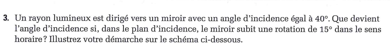 Secondaire 5 • 1aBonjour! Je ne trouvais pas d'exercices qui portait sur un miroir plan qui tournait de manière anti horaire donc j'ai essayer cela:Cependant, je ne suis pas sûre que cela soit correct! Pourriez-vous m'aider? Merci!