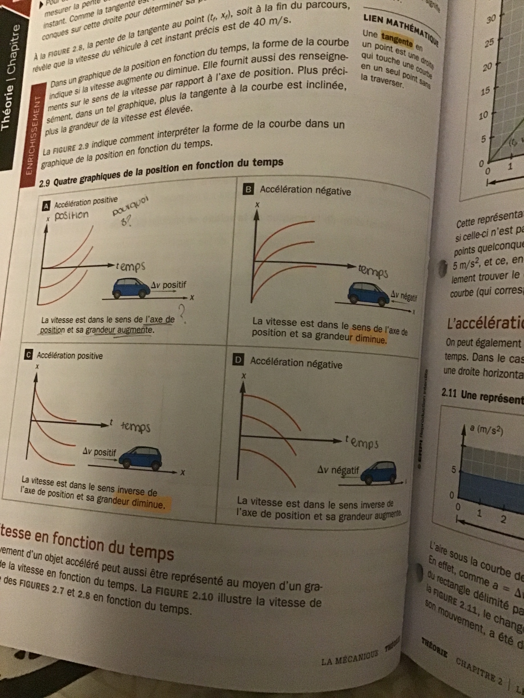 Je ne comprend pas ces graphiques de la position en fonction du temps. Je ne comprend pas pourquoi il y a 3 lignes, pis c'est comment l'axe de position peut augmenter. Parce que je pensais que l'axe de position c'est le coté que le mouvment se fait ( a gauche ou a droite ) mais tu peut pas augmenter la gauche ça fait pas de sens. Aussi dans le graphique ça dit que ça diminue mais ca augmente dans le graphique.
